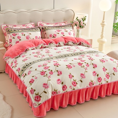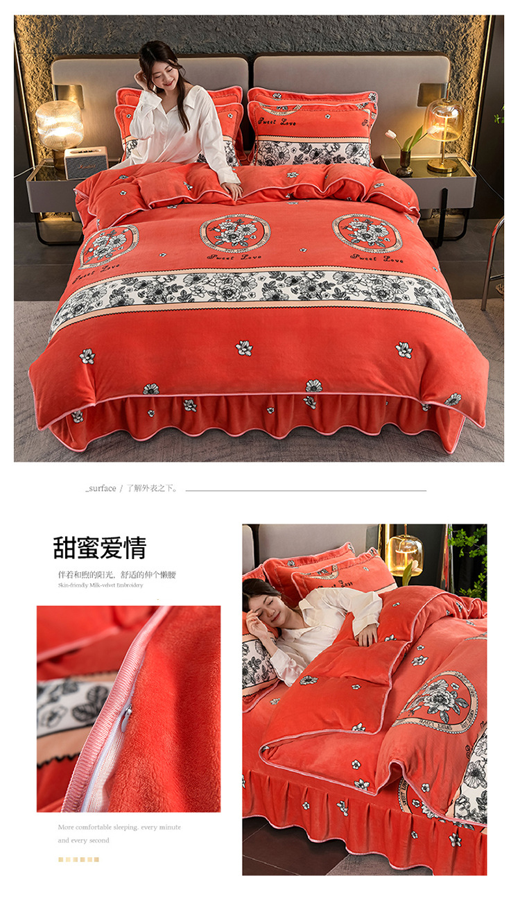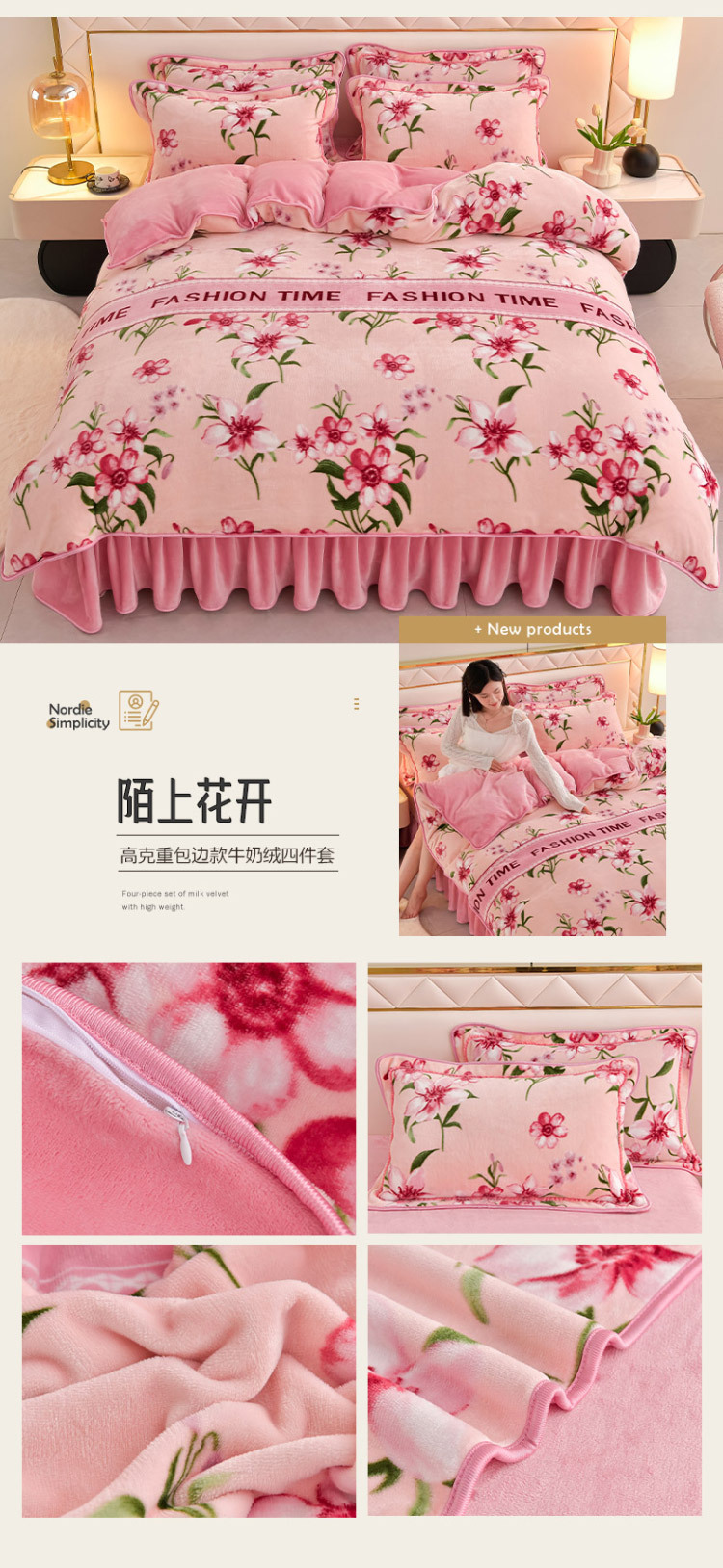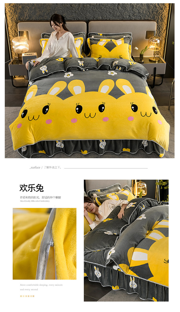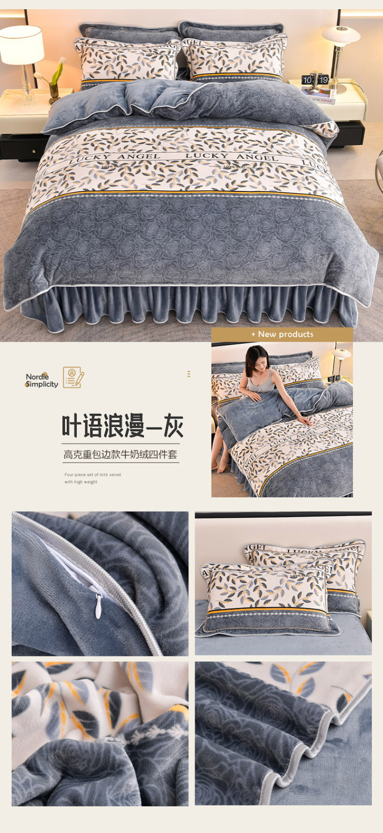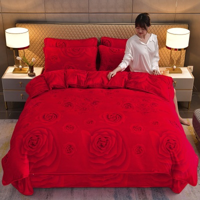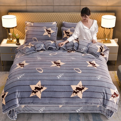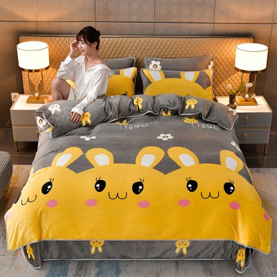新款牛奶绒四件套秋冬加厚保暖套件亲肤宝宝绒单被套床上用品