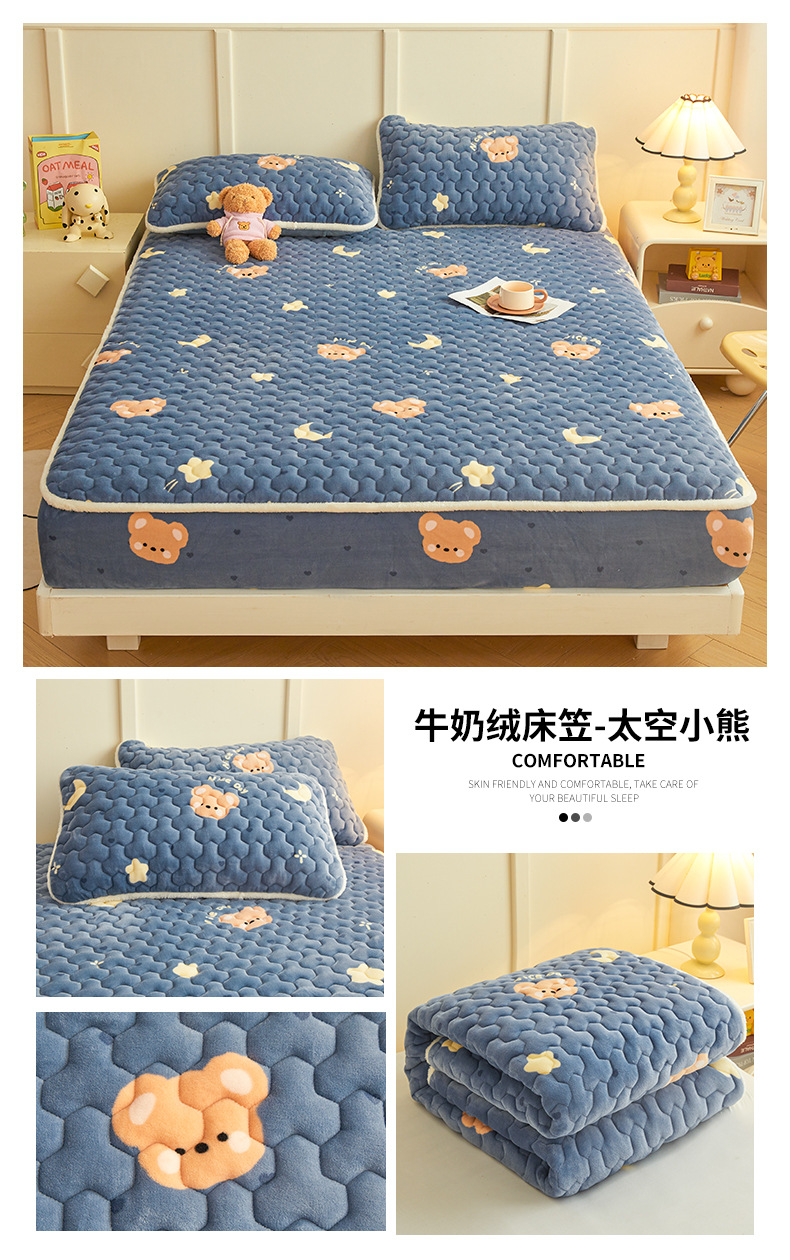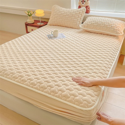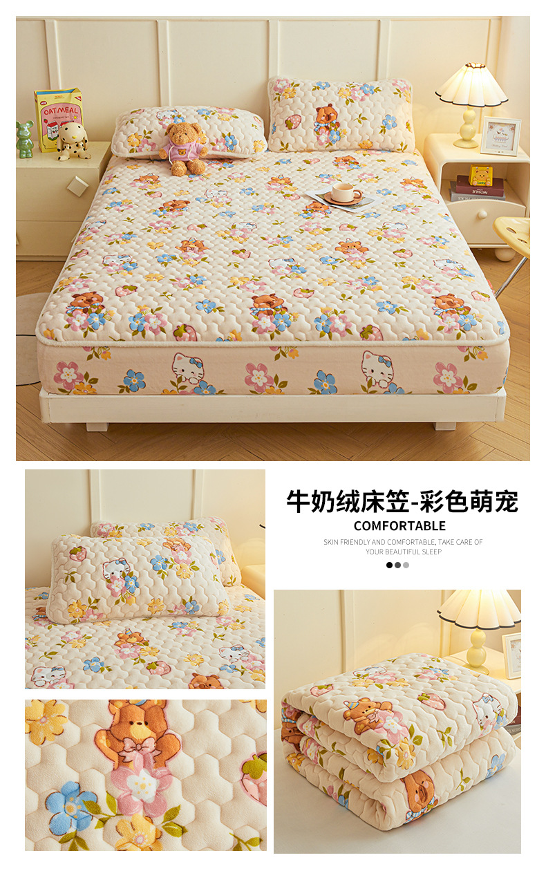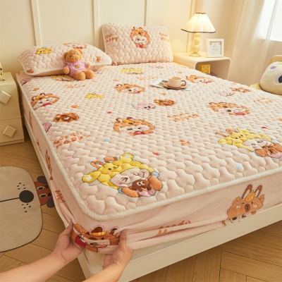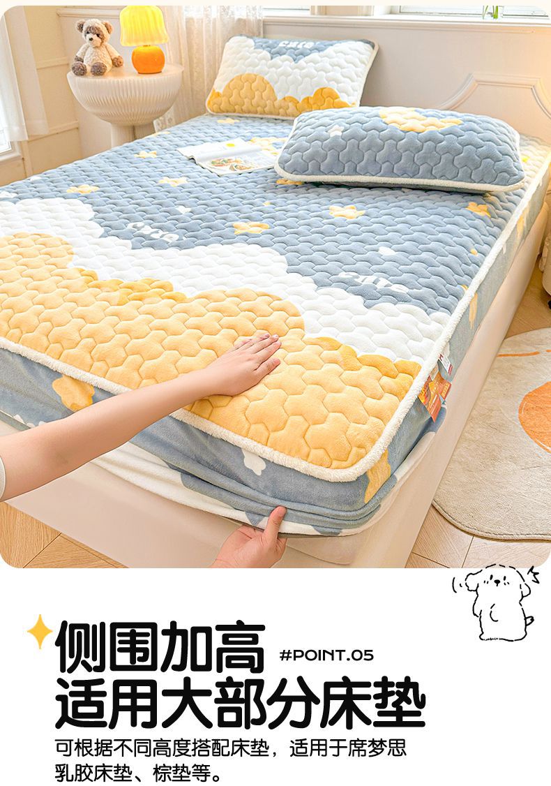 A类母婴级牛奶绒夹棉床笠加厚单双人席梦思床罩垫保护套跨境热销