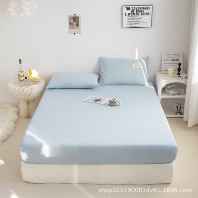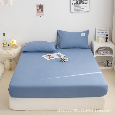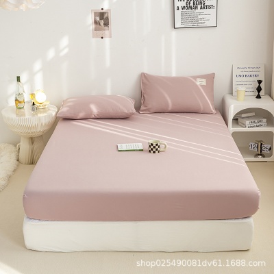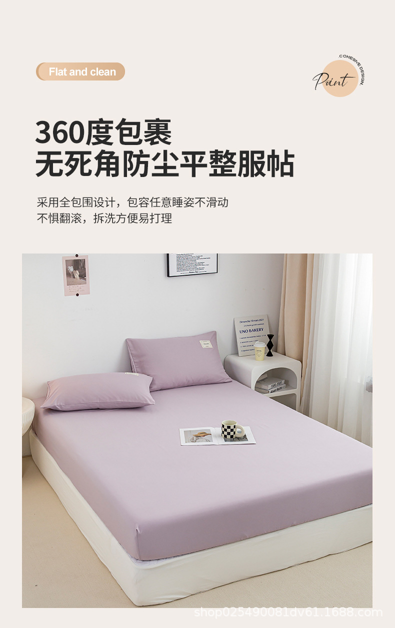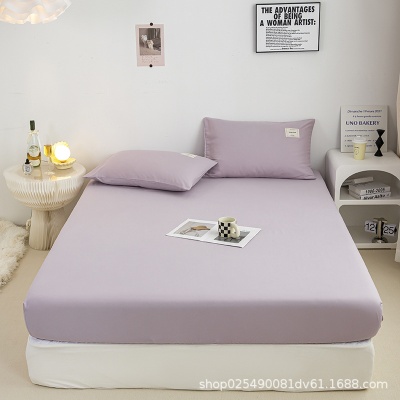 新款纯色磨毛床笠ins风宿舍床罩单件保护套枕套雅棉斜纹床垫套紫