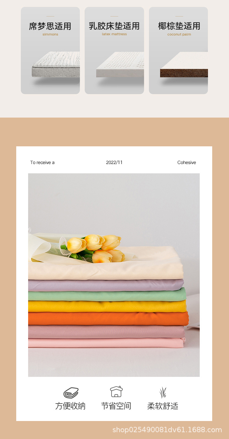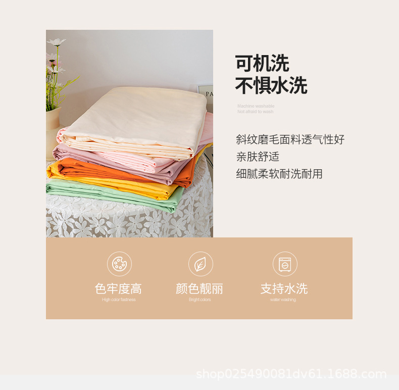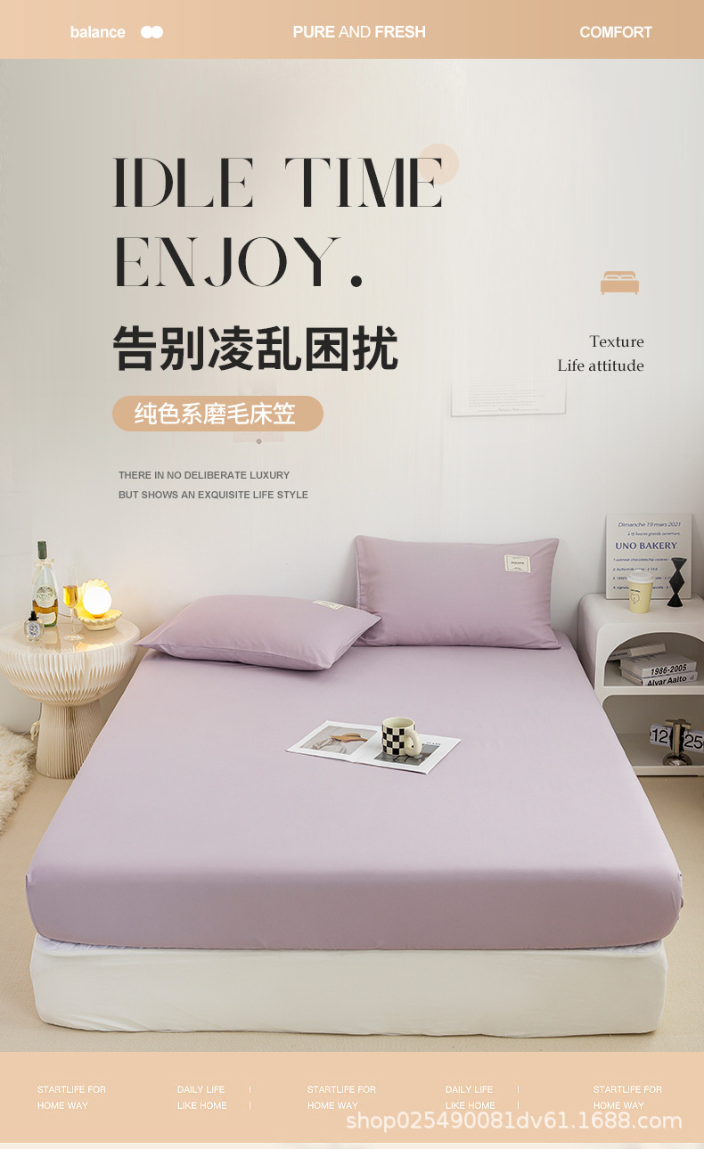 商品名稱:新款纯色磨毛床笠ins风宿舍床罩单件保护套枕套雅棉斜纹床垫套紫