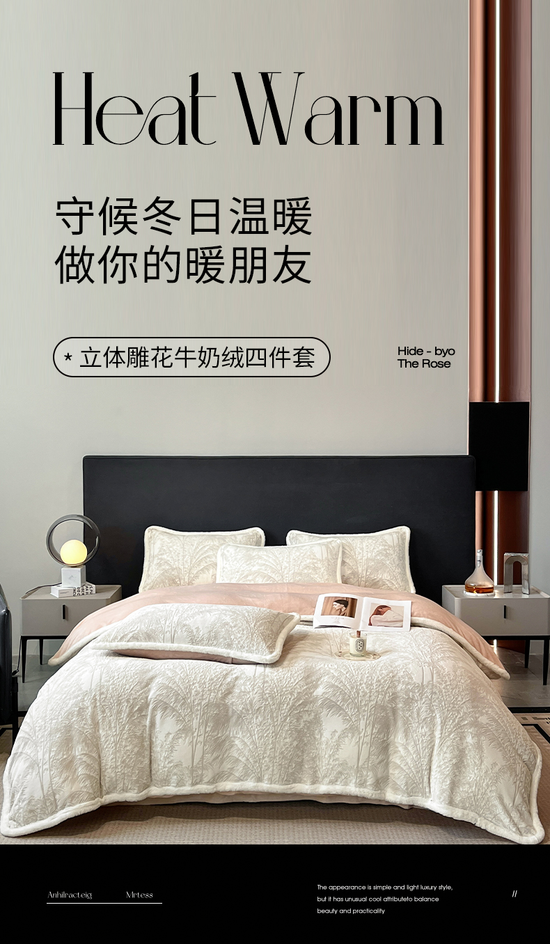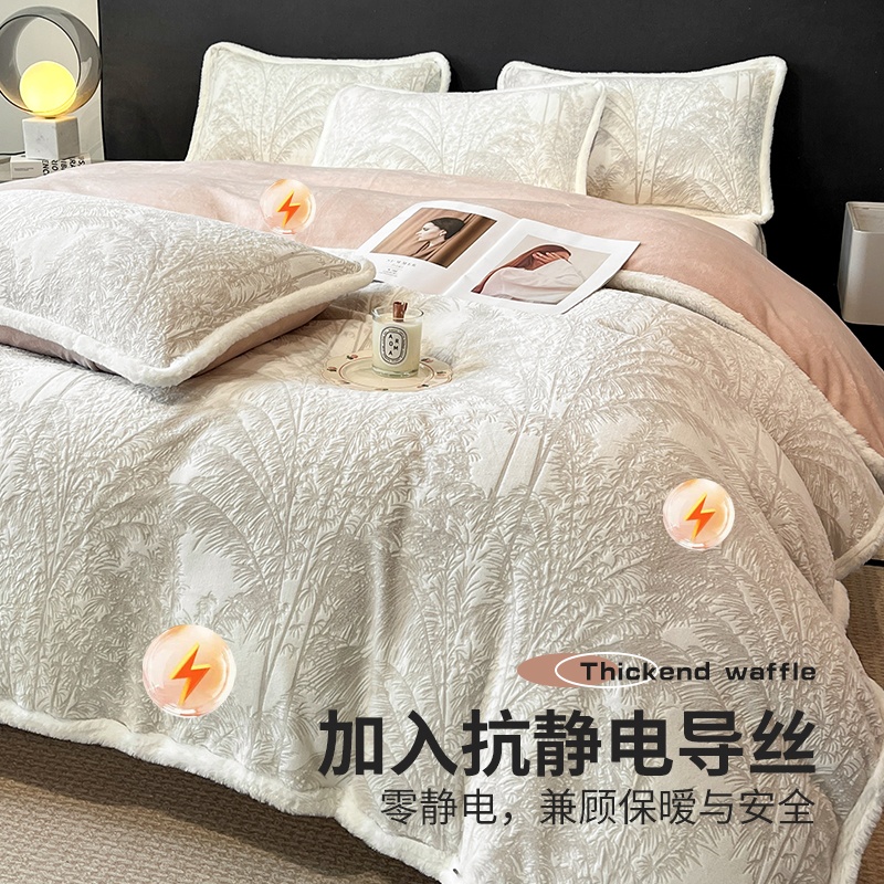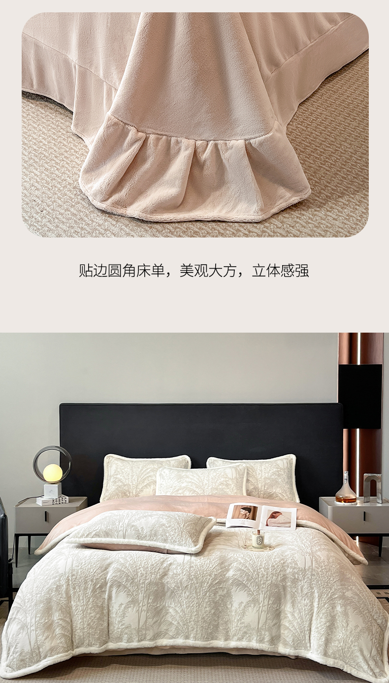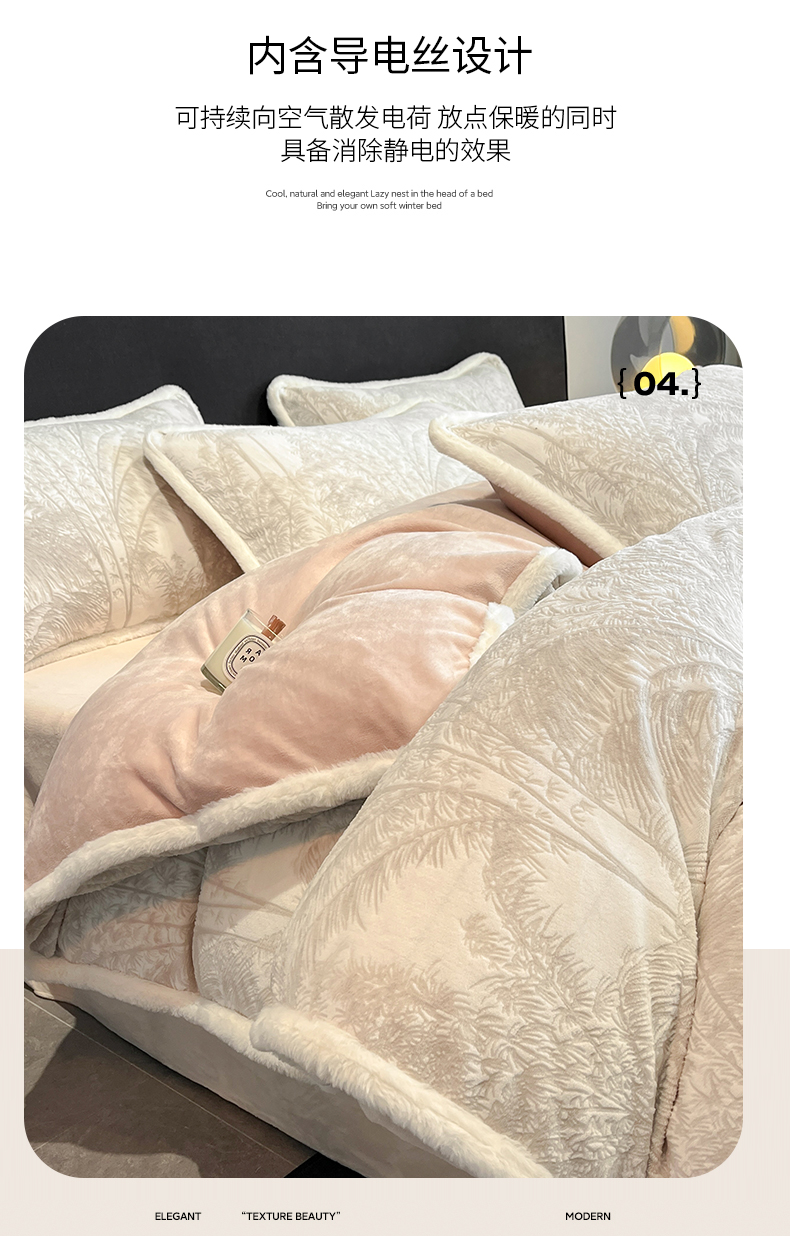 商品名稱:高档雕花绒床上四件套轻奢高级感牛奶绒床品加厚珊瑚绒面床单被套