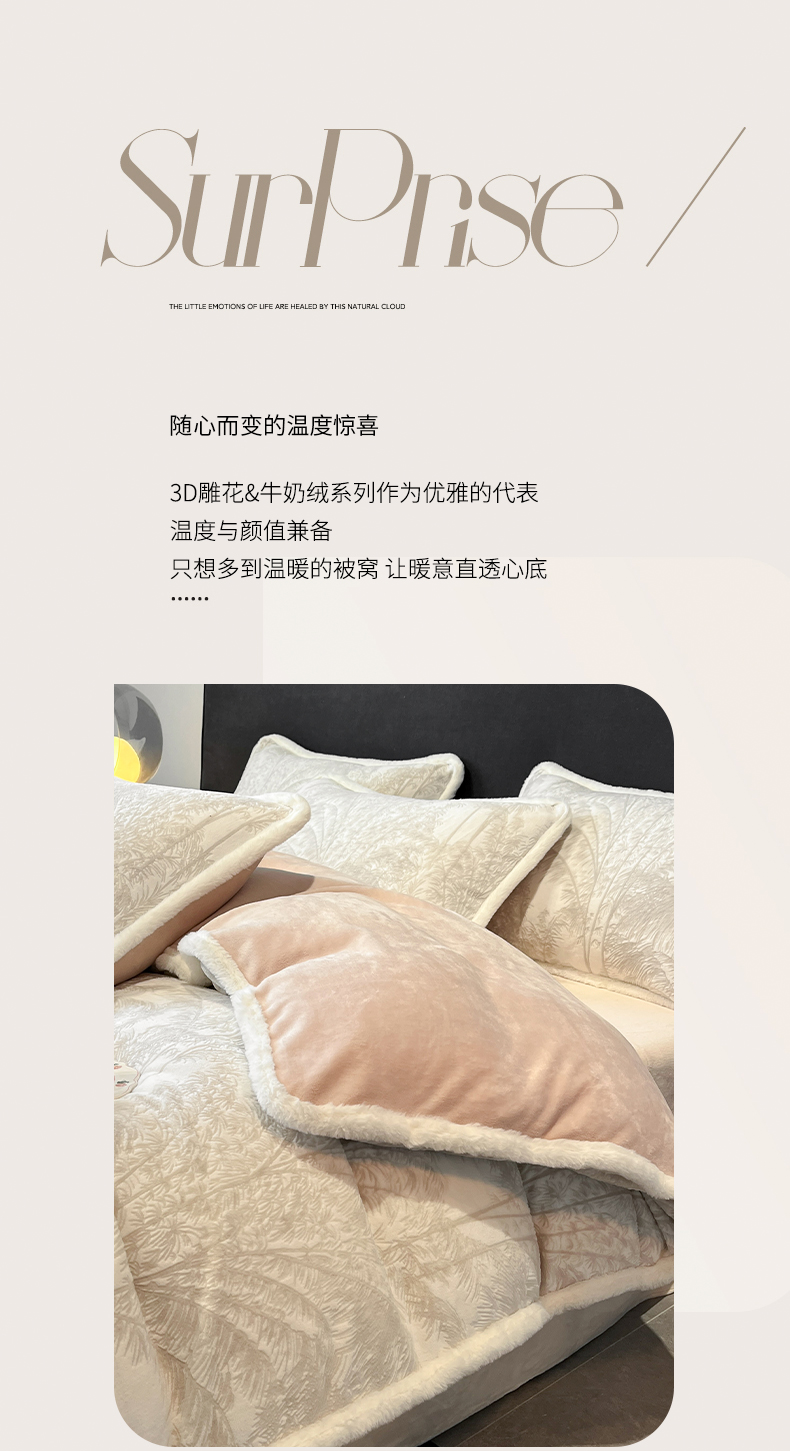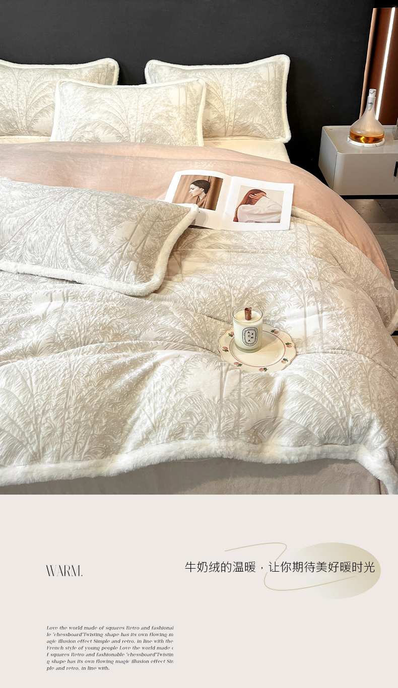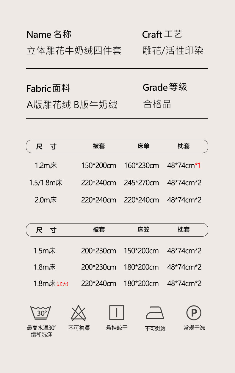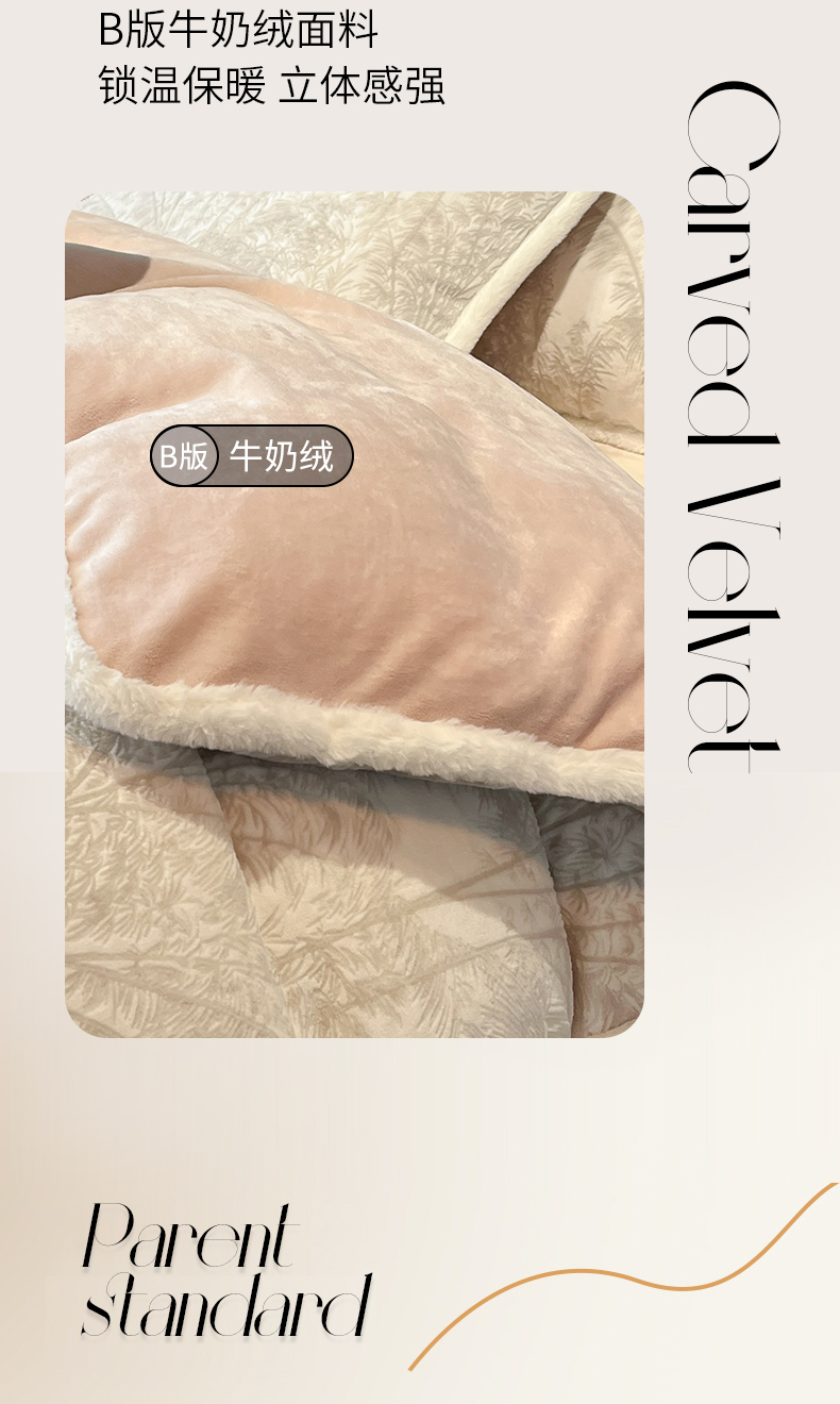 商品名稱:高档雕花绒床上四件套轻奢高级感牛奶绒床品加厚珊瑚绒面床单被套