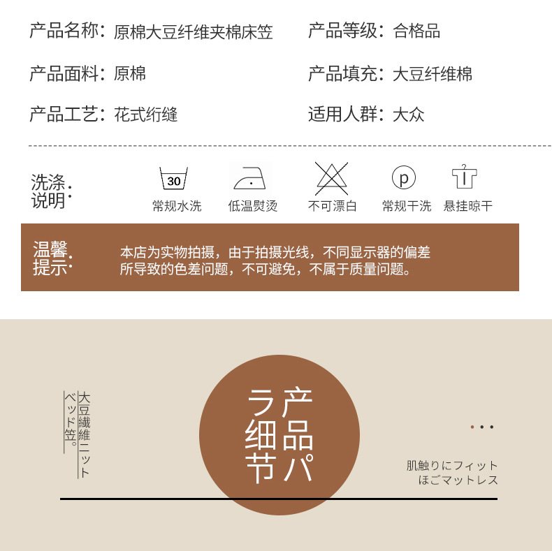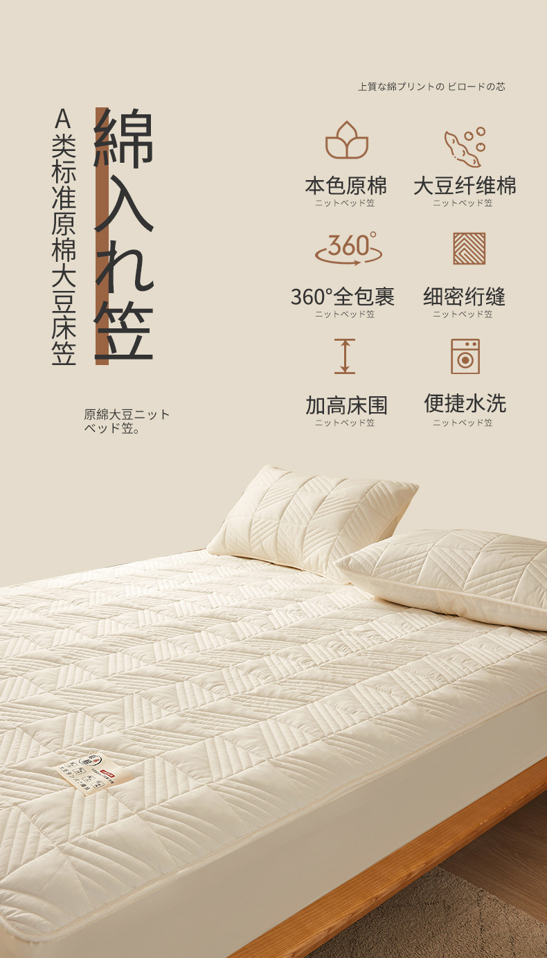 商品名稱:全棉A类母婴级夹棉床笠单件100%原棉本色床罩加厚全包床垫保护套