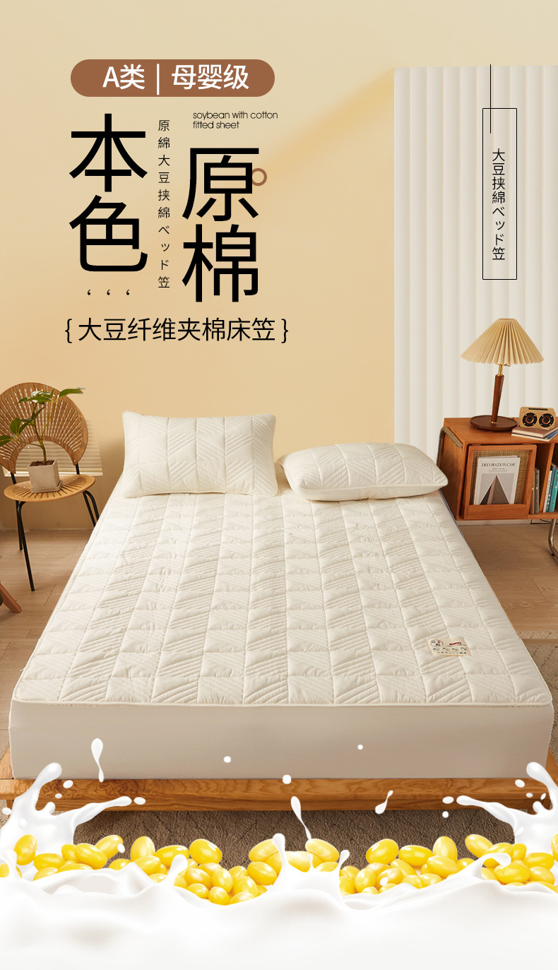 全棉A类母婴级夹棉床笠单件100%原棉本色床罩加厚全包床垫保护套