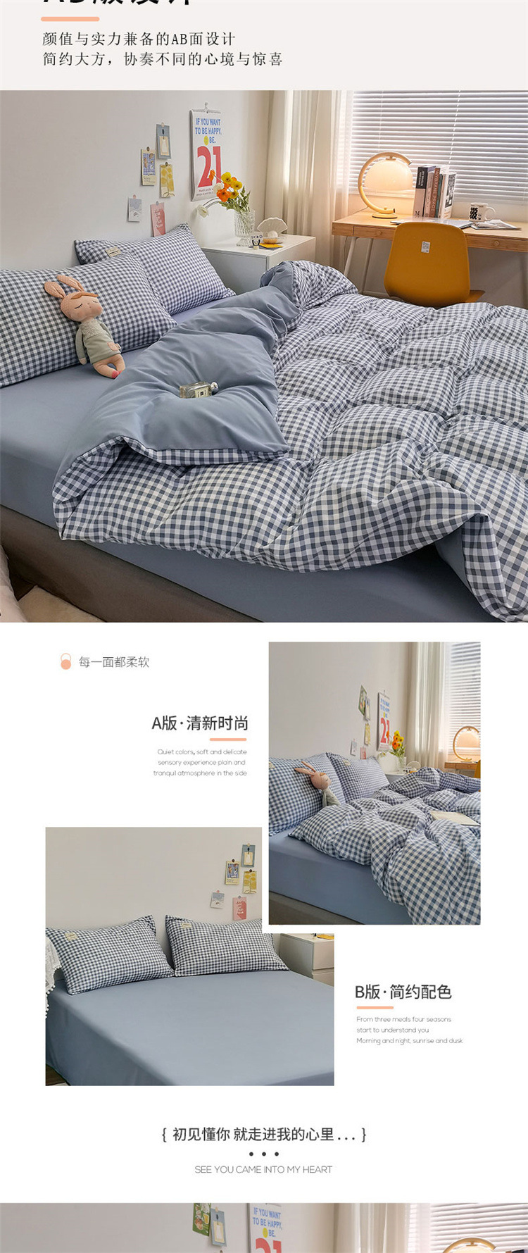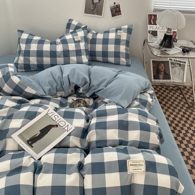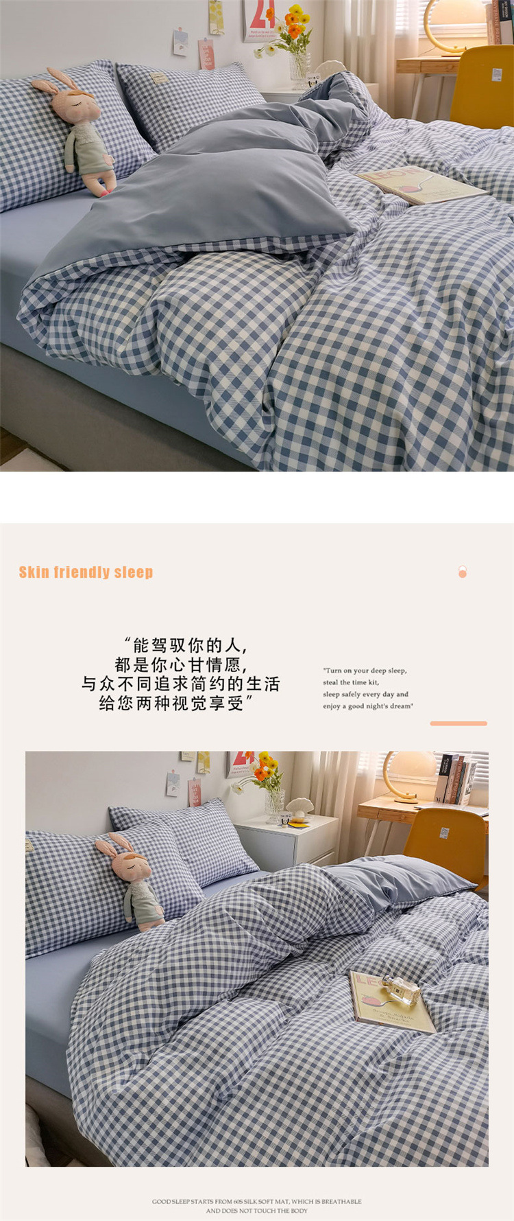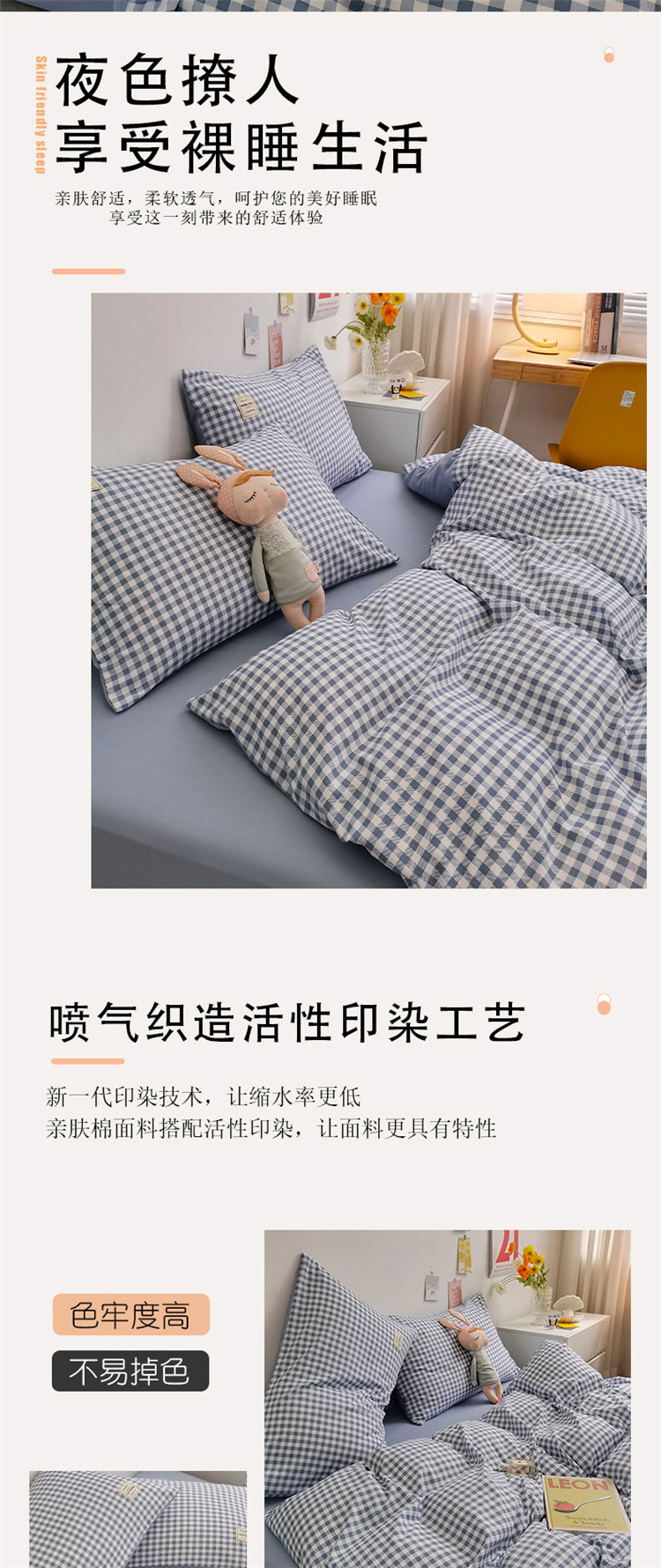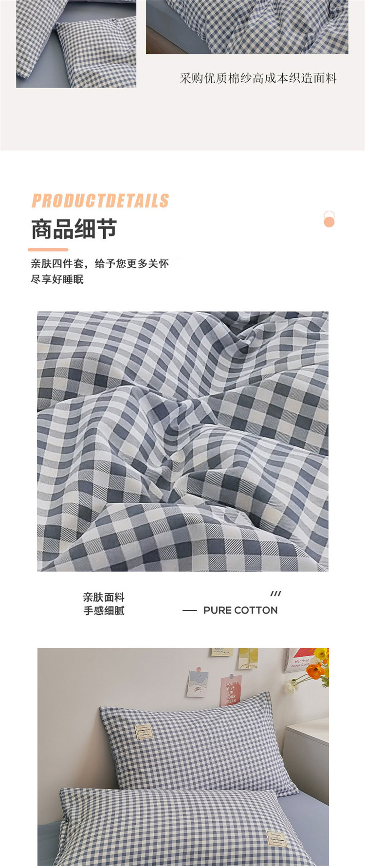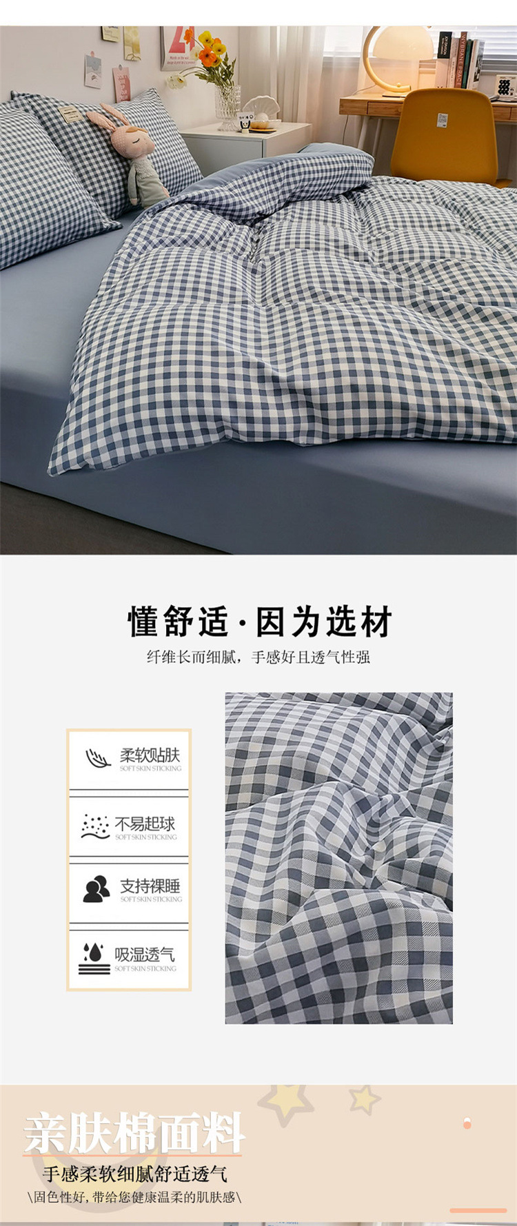 A类母婴级水洗棉床上四件套格子被套床笠款学生宿舍三件套非 纯棉