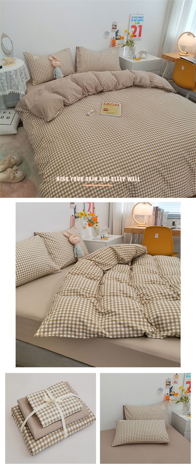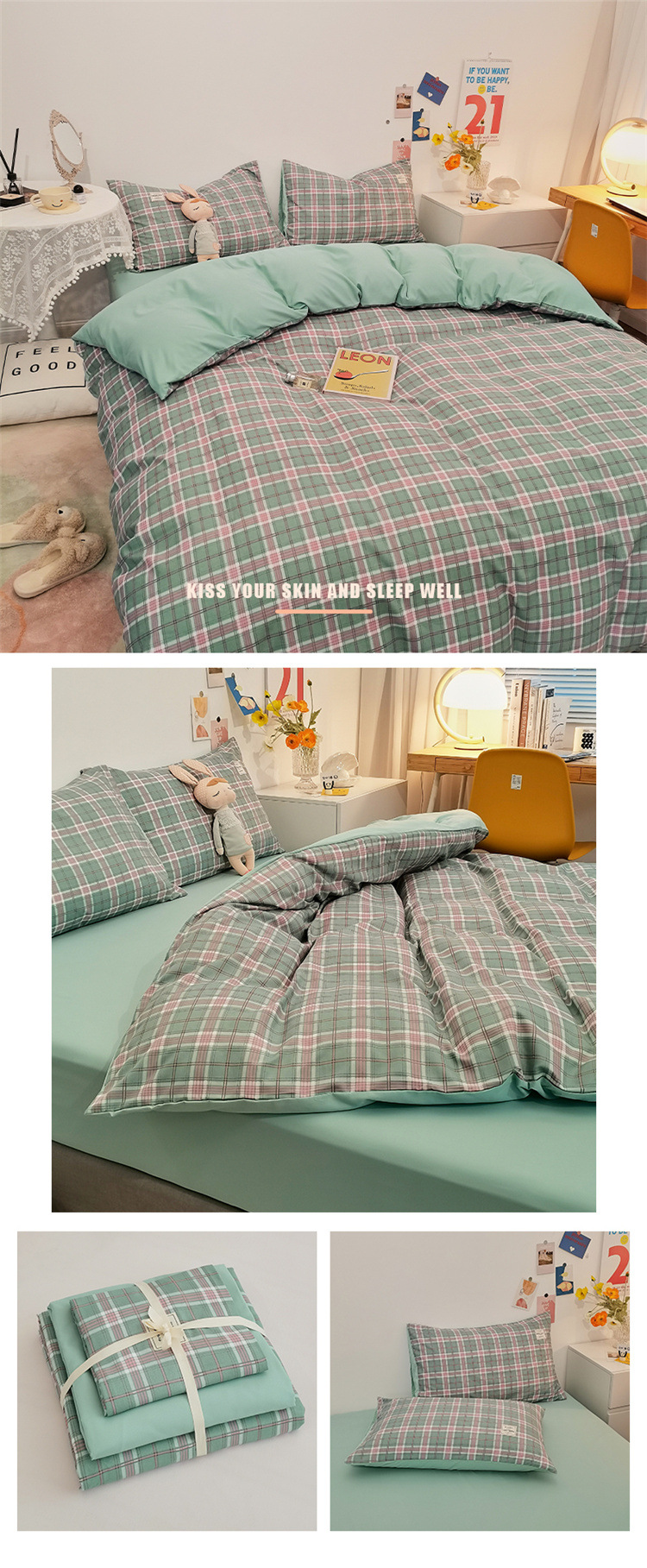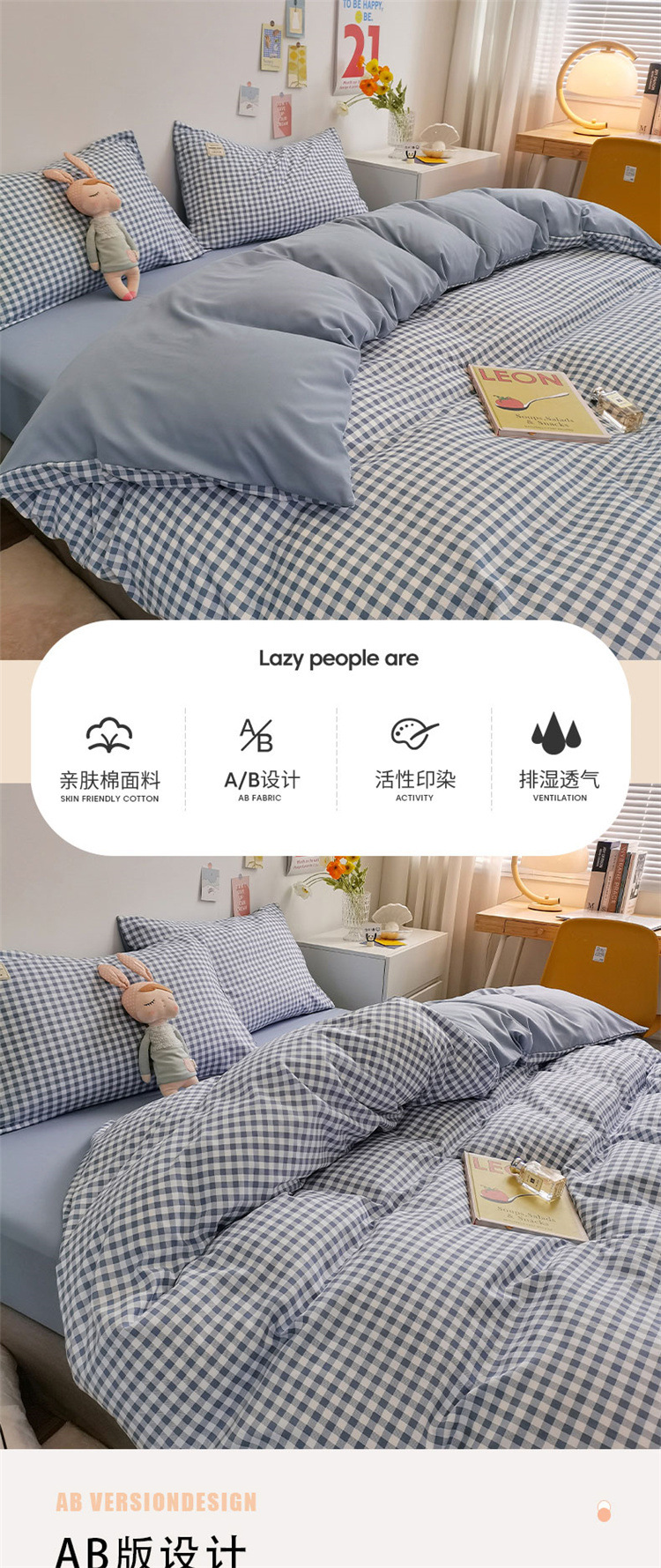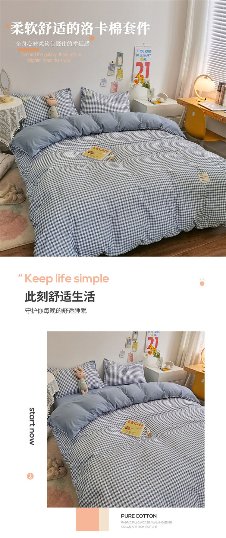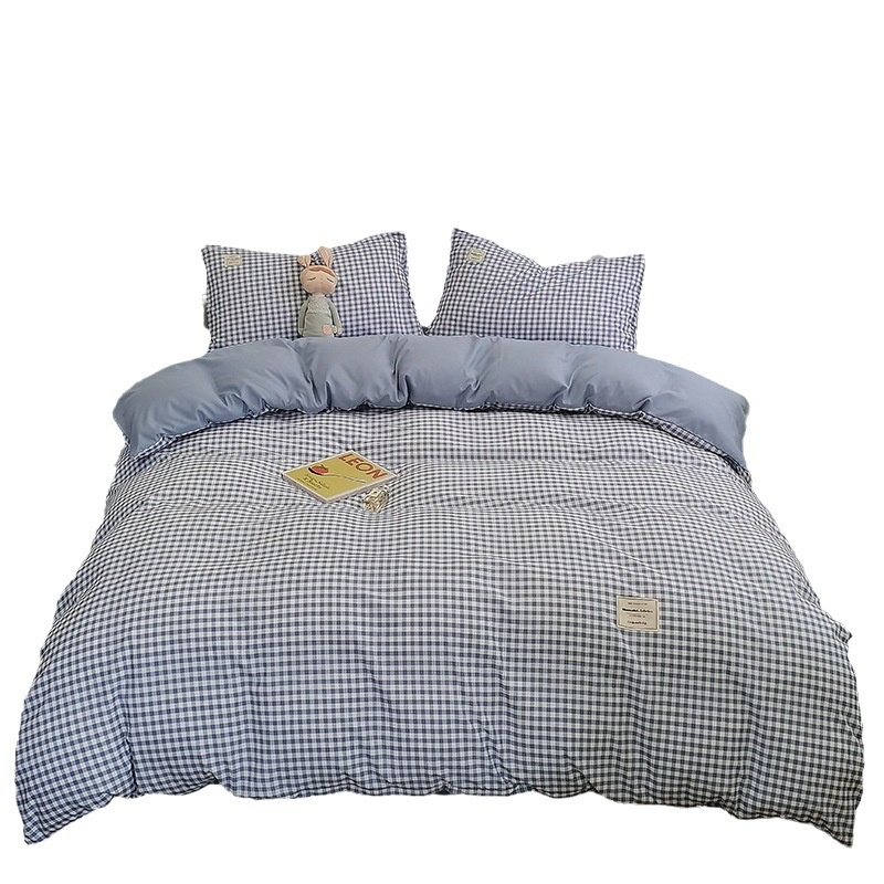 A类母婴级水洗棉床上四件套格子被套床笠款学生宿舍三件套非 纯棉