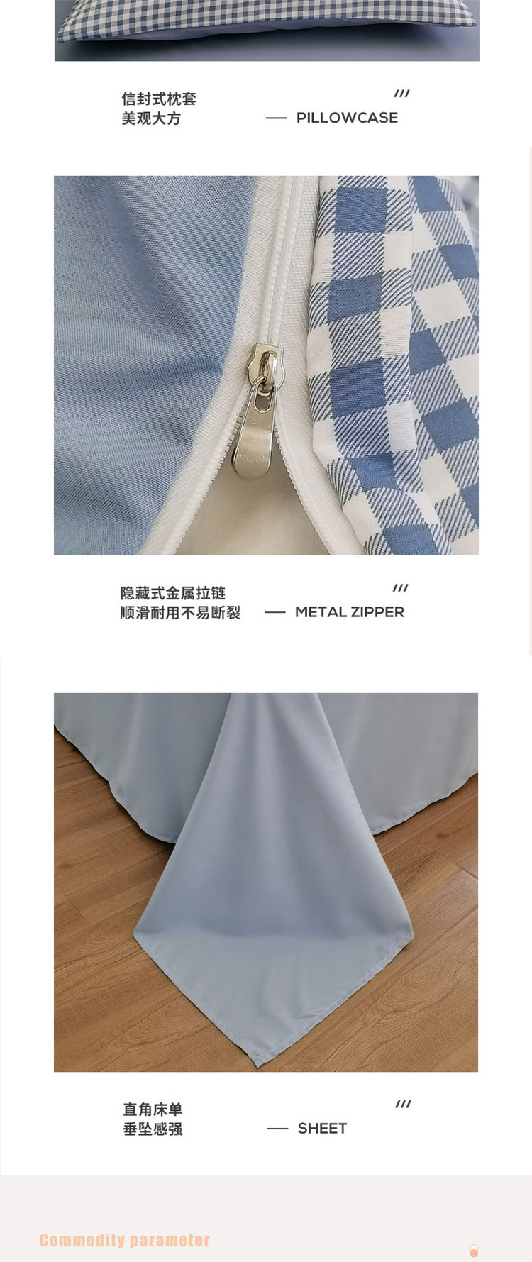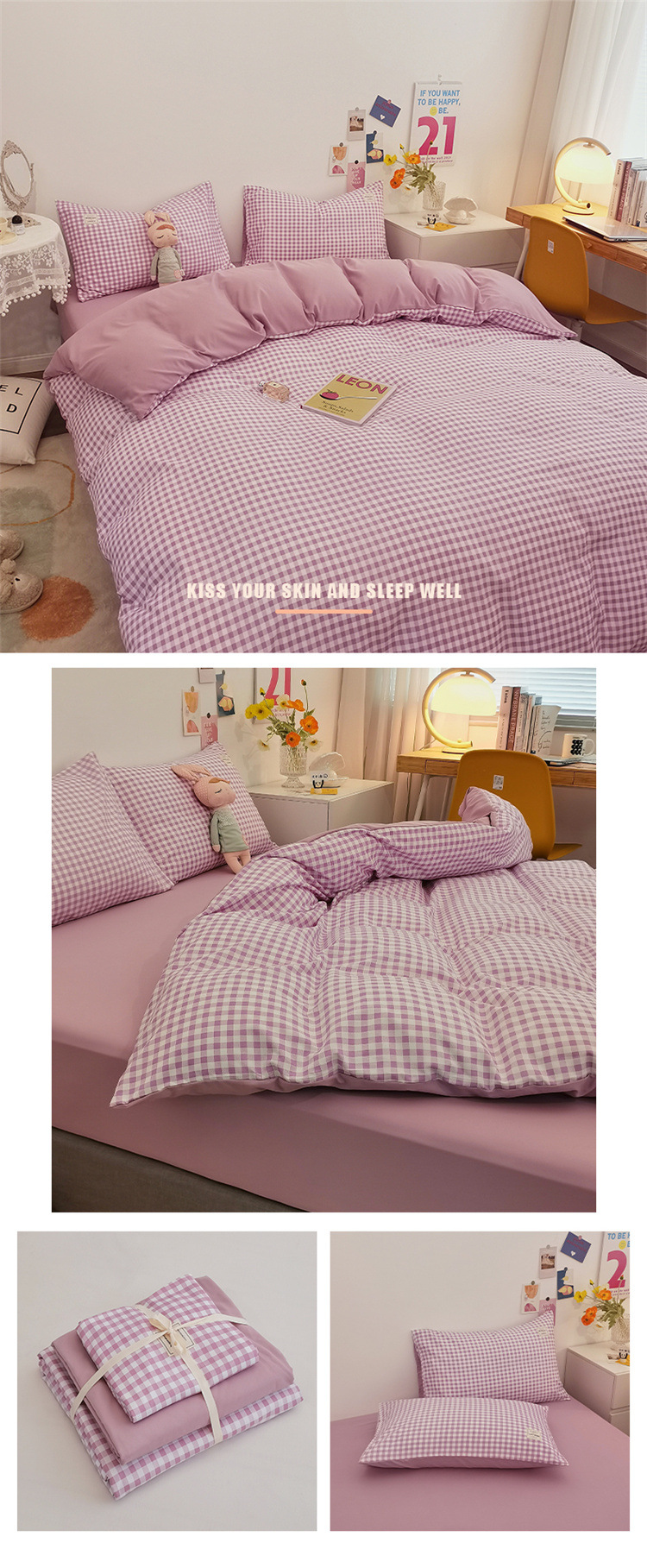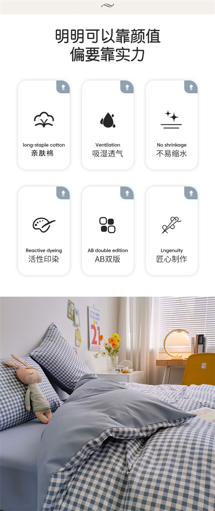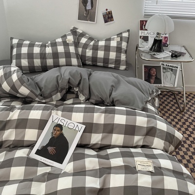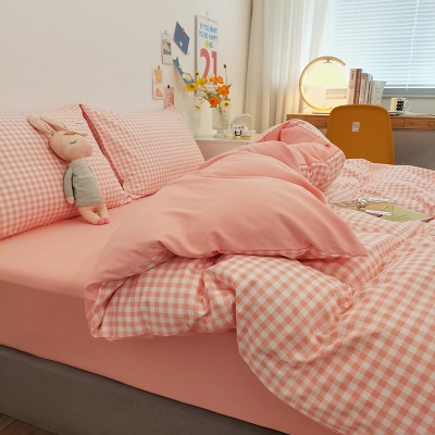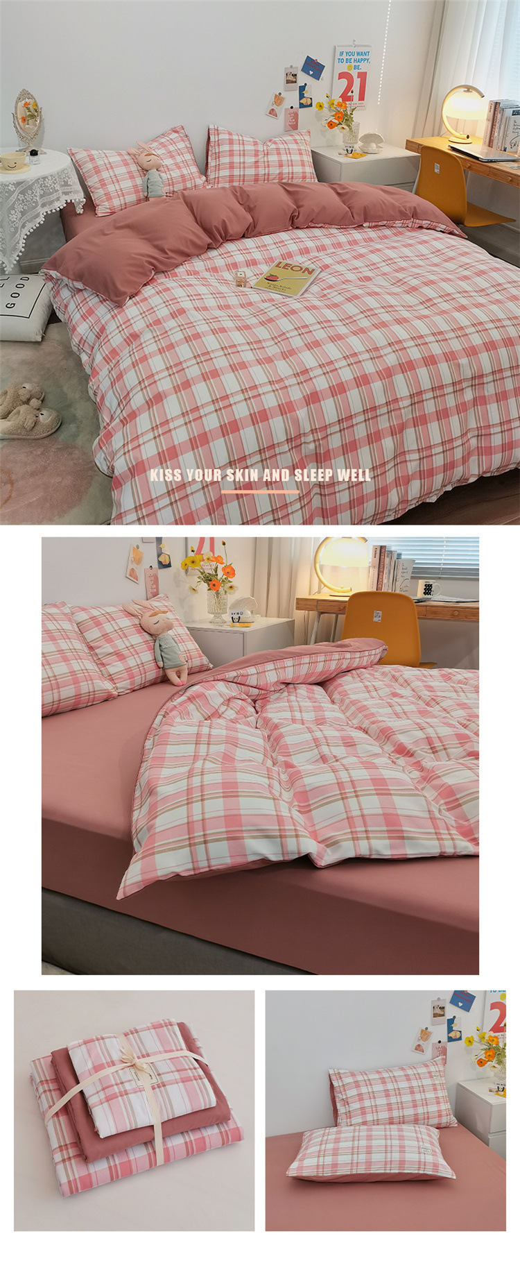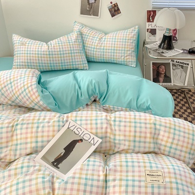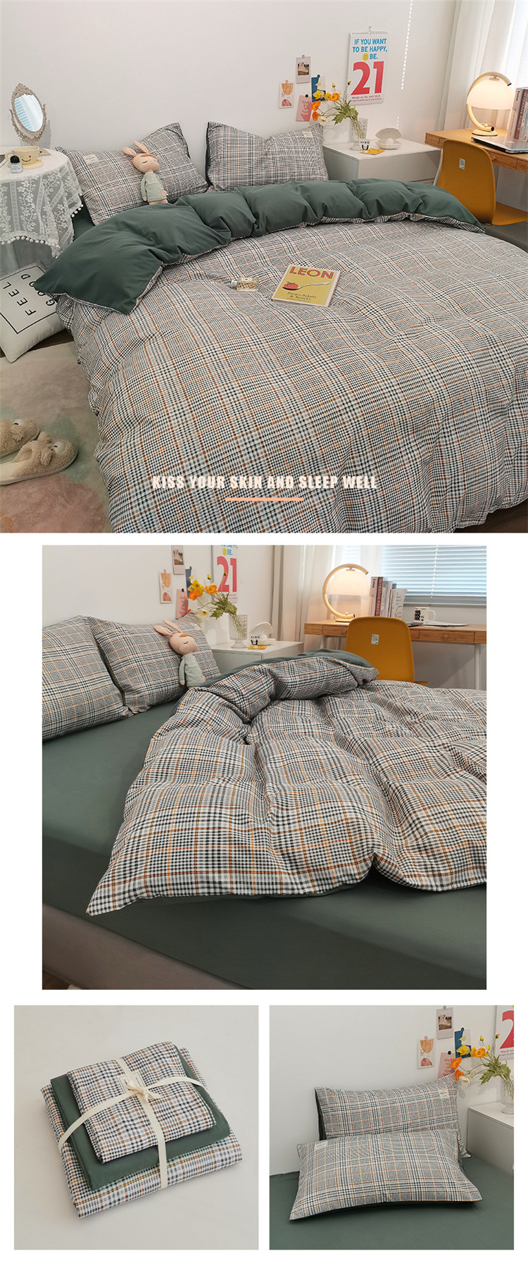 A类母婴级水洗棉床上四件套格子被套床笠款学生宿舍三件套非 纯棉