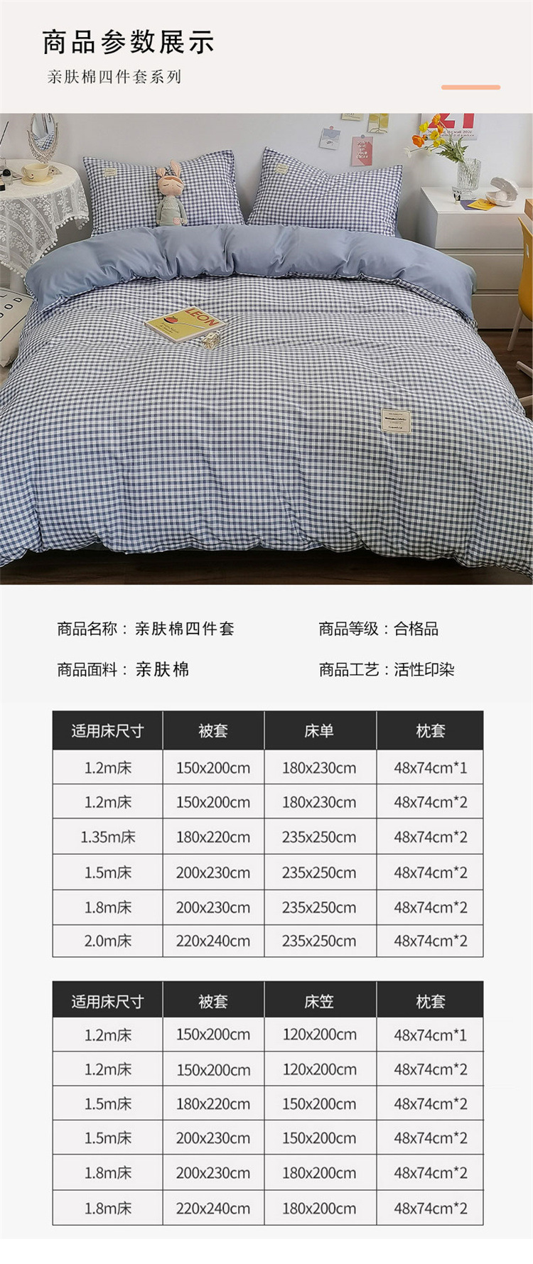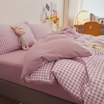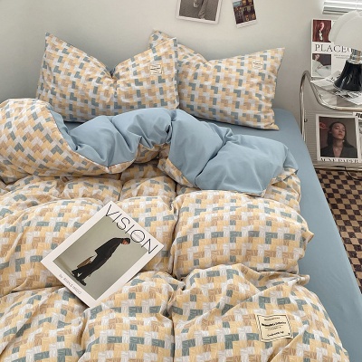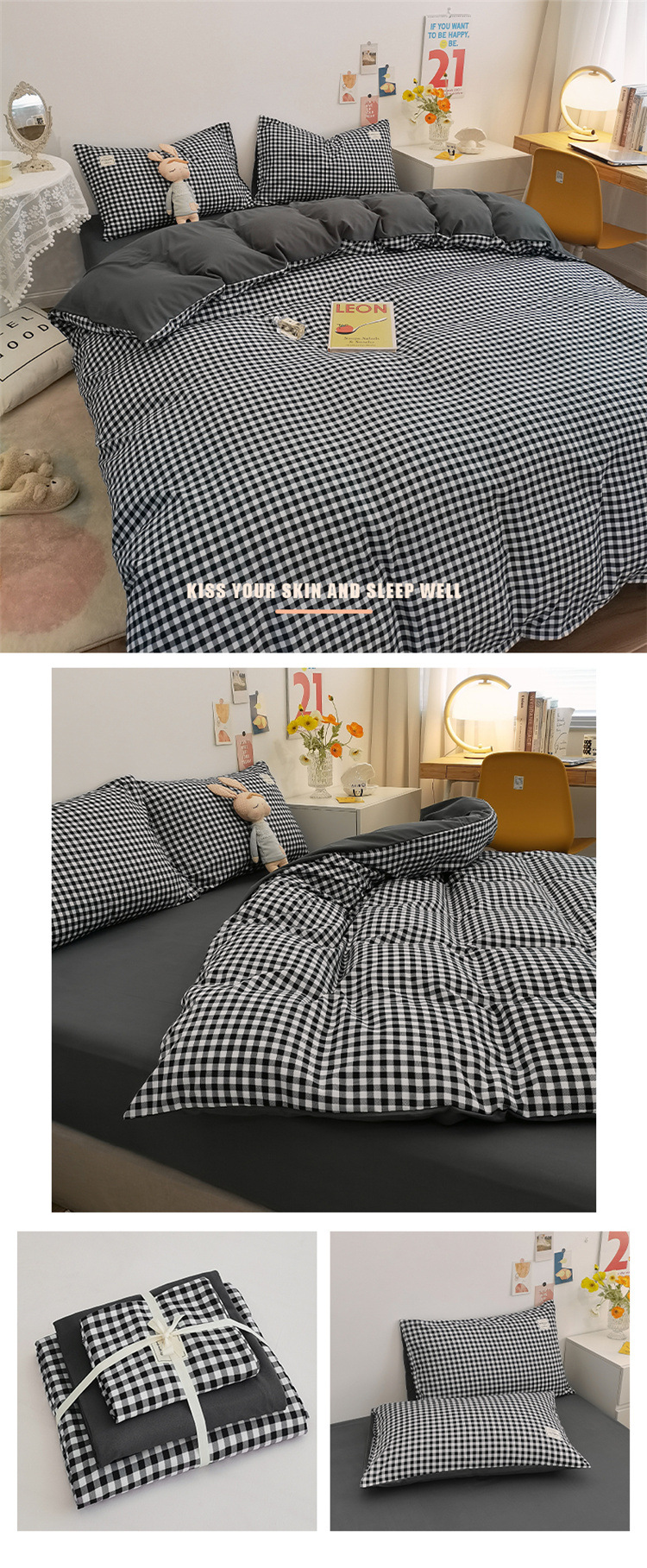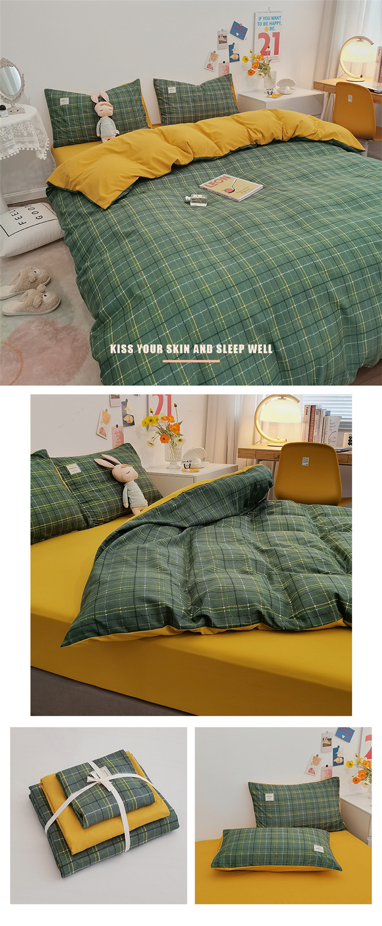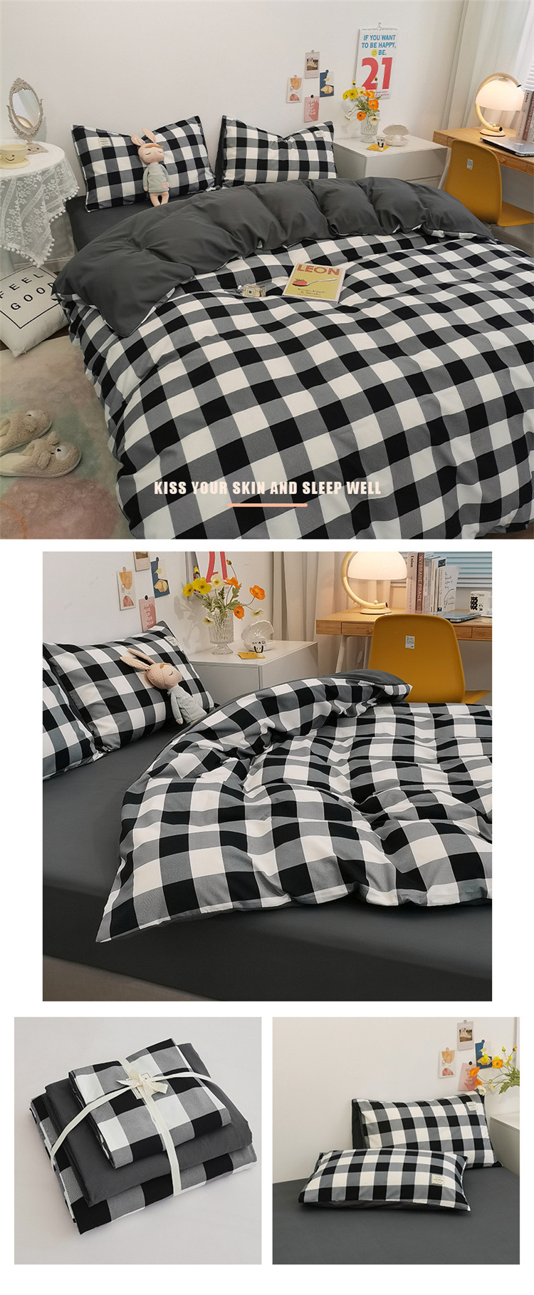 A类母婴级水洗棉床上四件套格子被套床笠款学生宿舍三件套非 纯棉