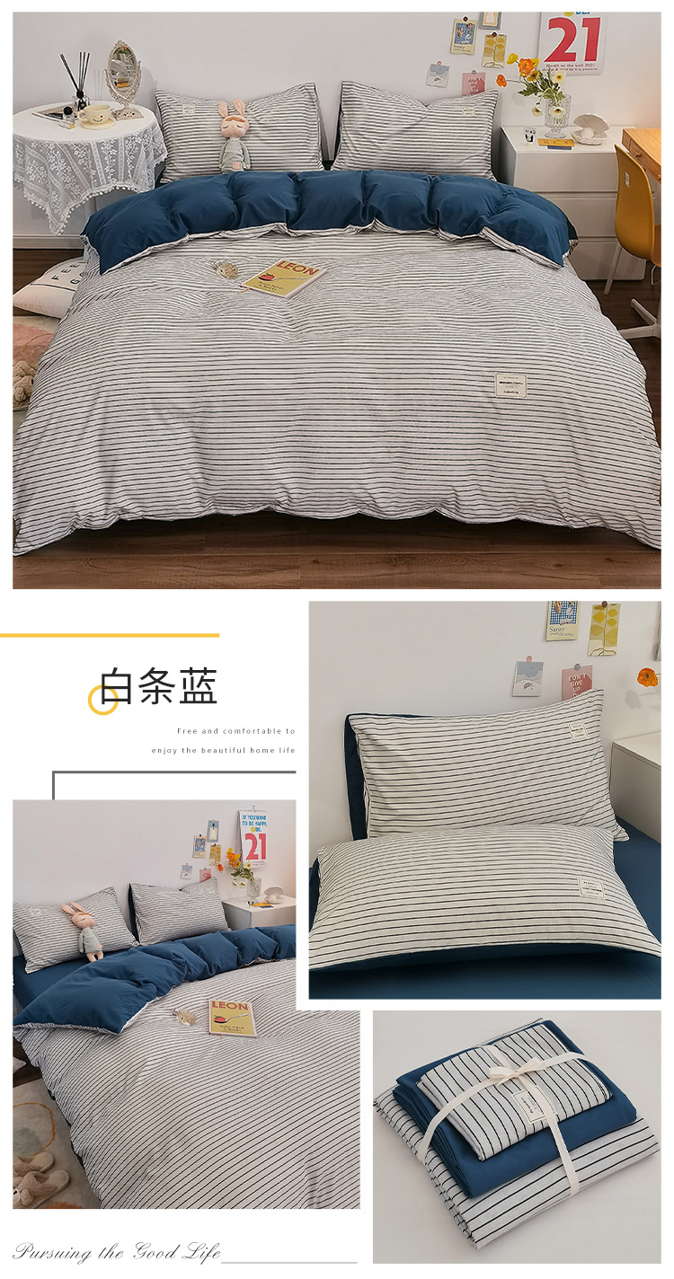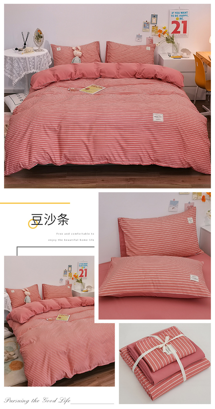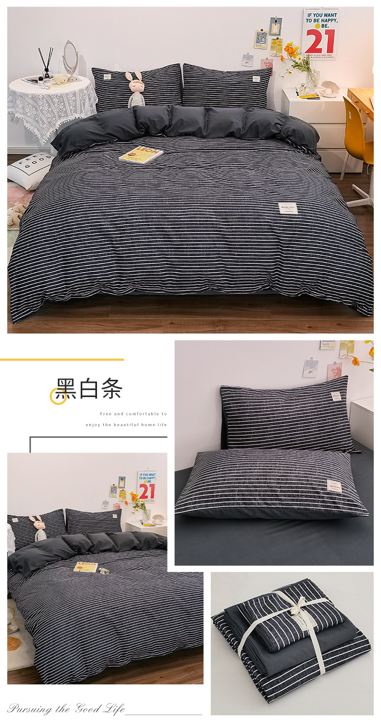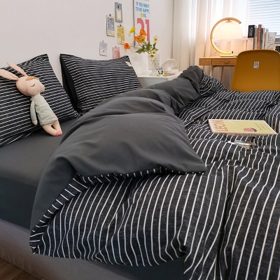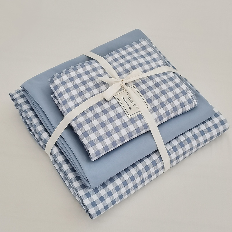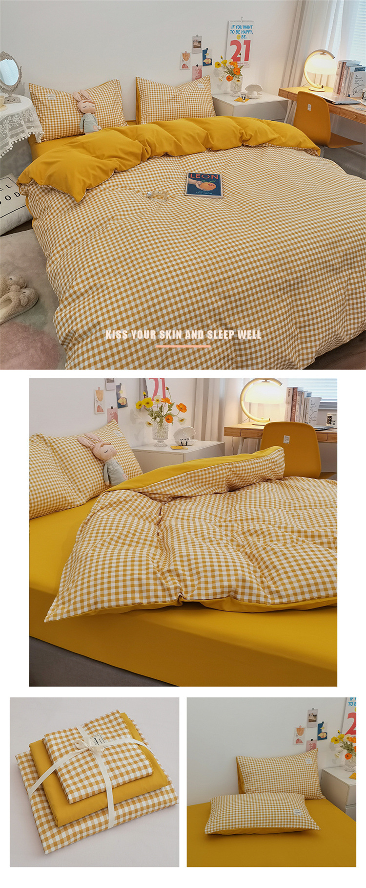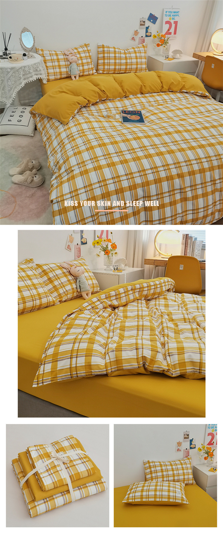 A类母婴级水洗棉床上四件套格子被套床笠款学生宿舍三件套非 纯棉