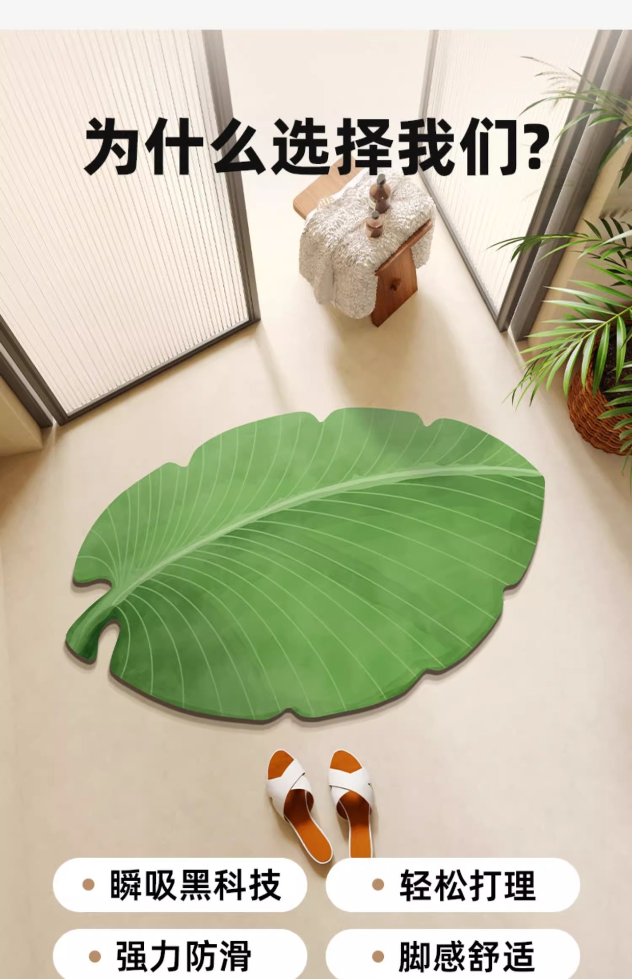 卫生间门口吸水地垫芭蕉叶硅藻泥浴室地垫淋浴房洗手台速干防滑垫