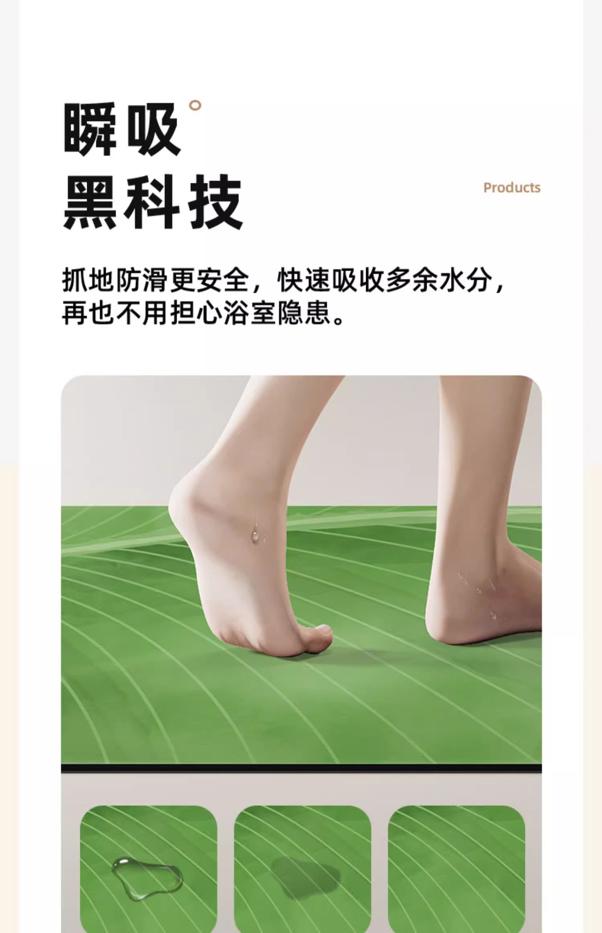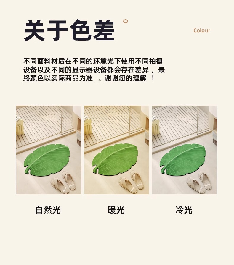 商品名稱:卫生间门口吸水地垫芭蕉叶硅藻泥浴室地垫淋浴房洗手台速干防滑垫