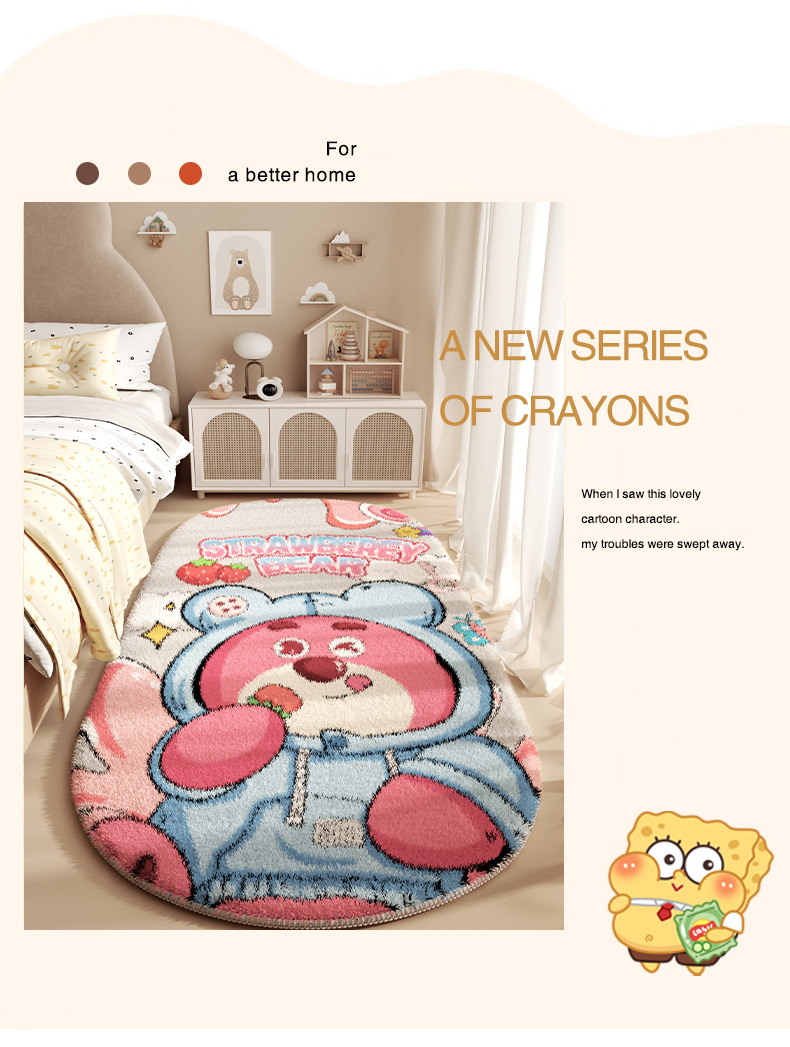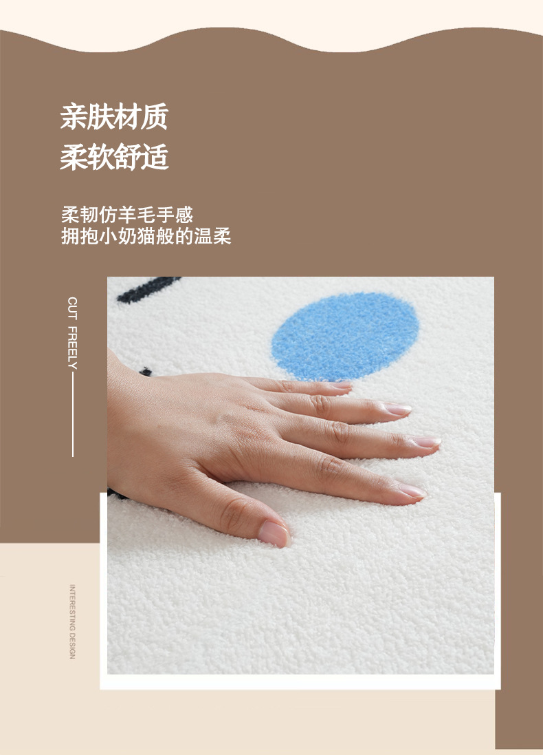 商品名稱:卡通卧室床边毯耐脏地毯女孩儿童房地毯卧室加厚毛绒垫一件代发