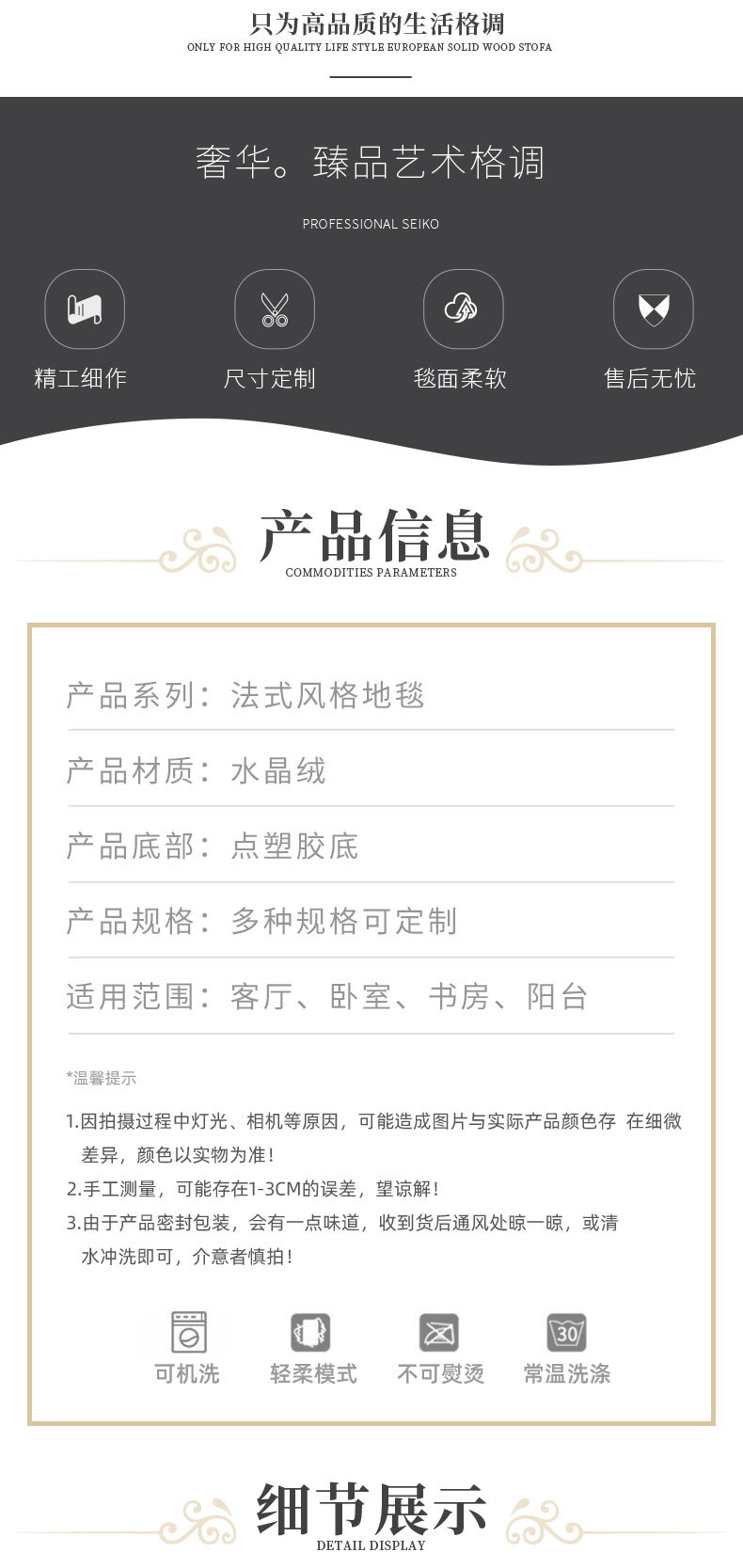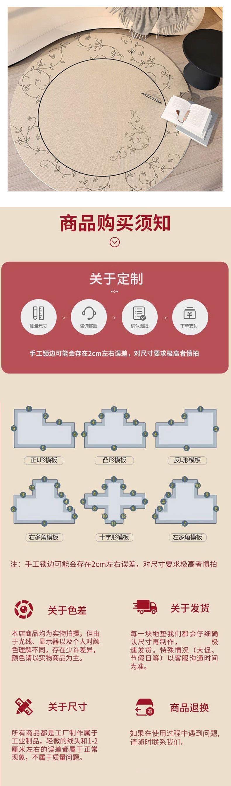 商品名稱:法式奶油圆形地毯客厅茶几卧室化妆凳脚垫梳妆台耐脏轻奢卧室垫