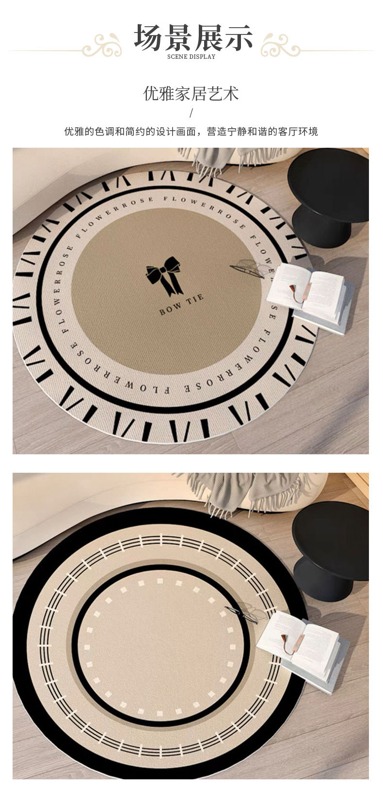 法式奶油圆形地毯客厅茶几卧室化妆凳脚垫梳妆台耐脏轻奢卧室垫