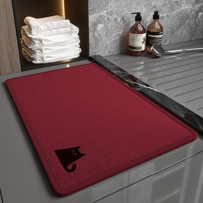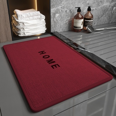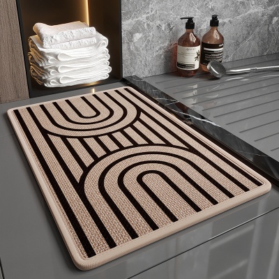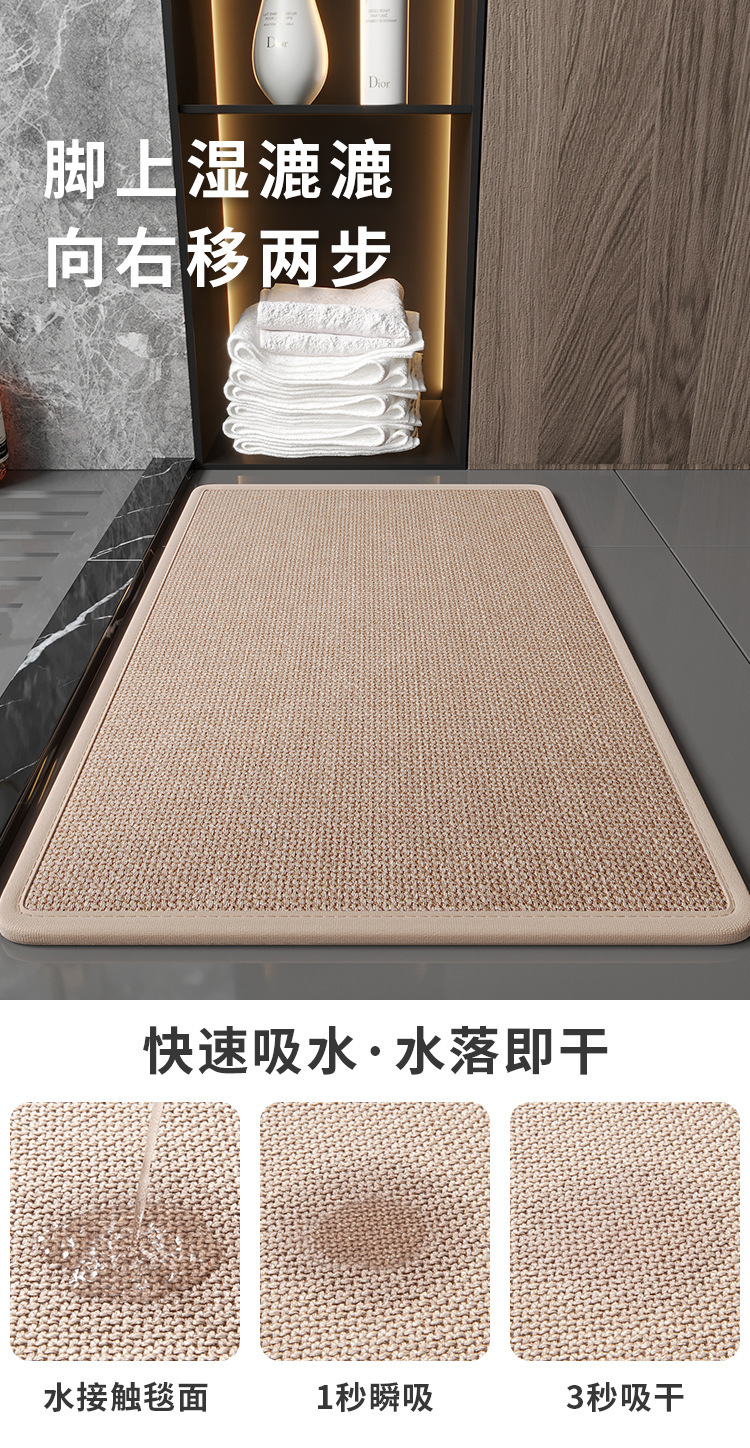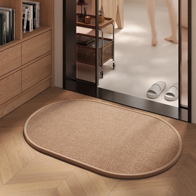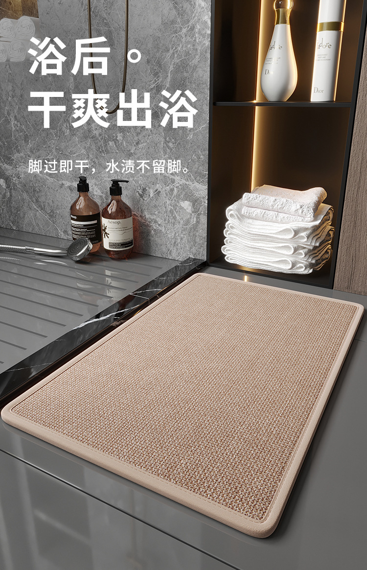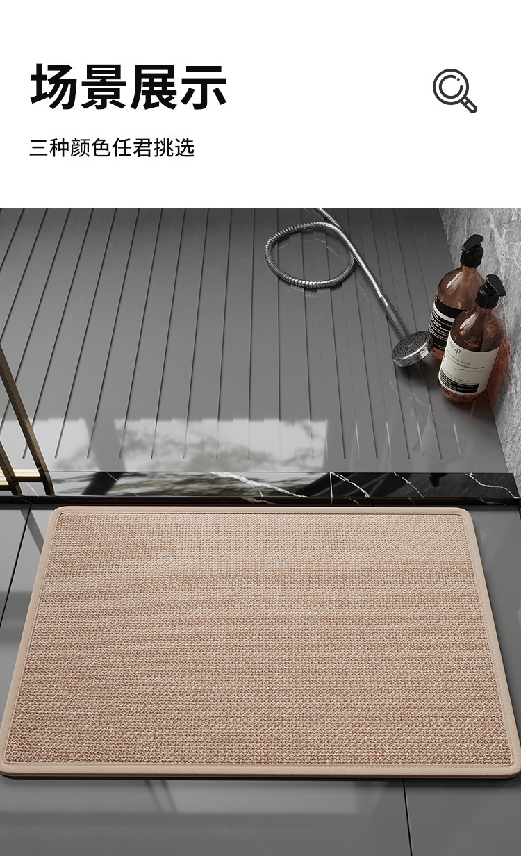 跨境纯色亚麻硅藻泥地垫浴室吸水防滑垫亚马逊洗手间门口速干地垫