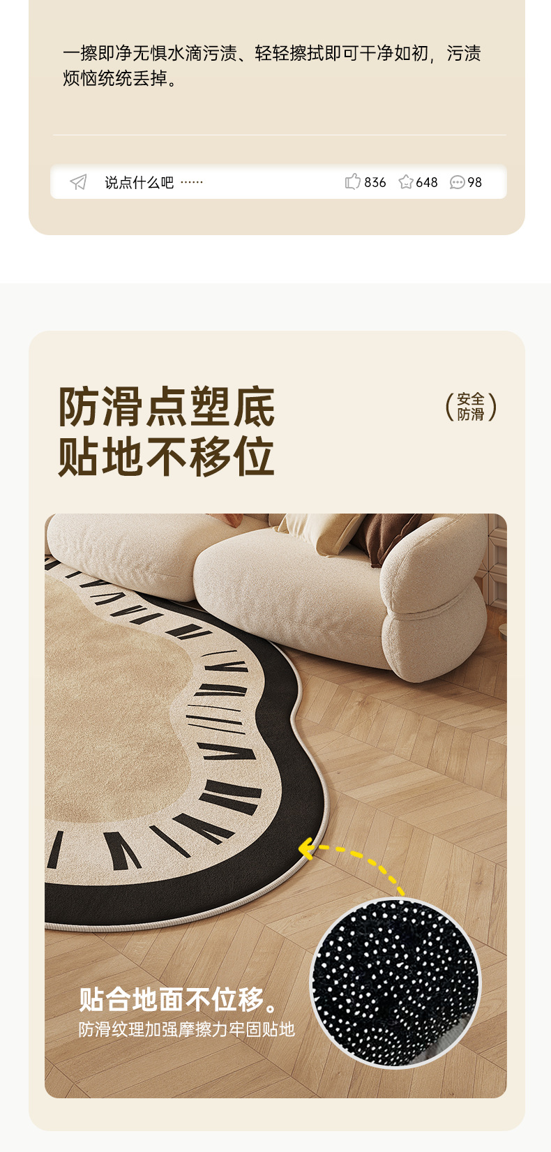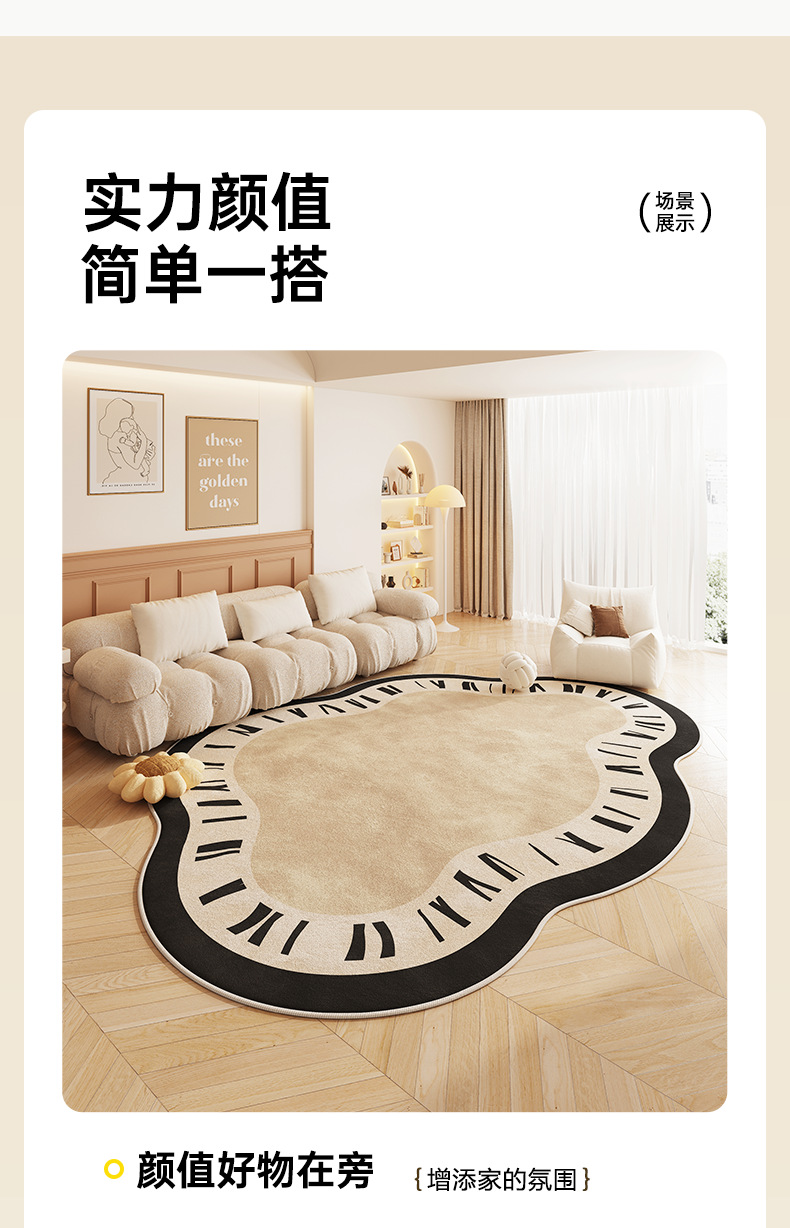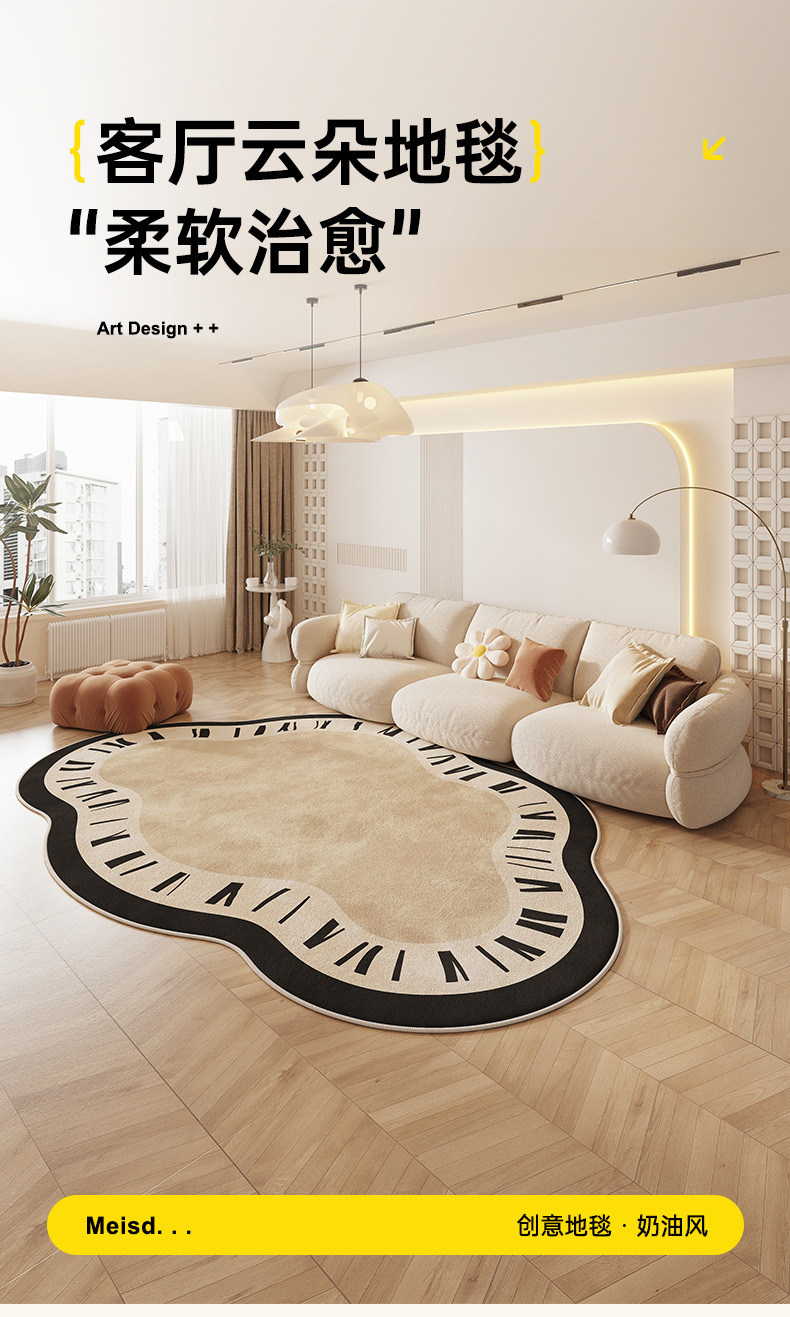 商品名稱:法式奶油风客厅地毯耐脏易打理地垫大面积满铺防滑垫轻奢卧室床边