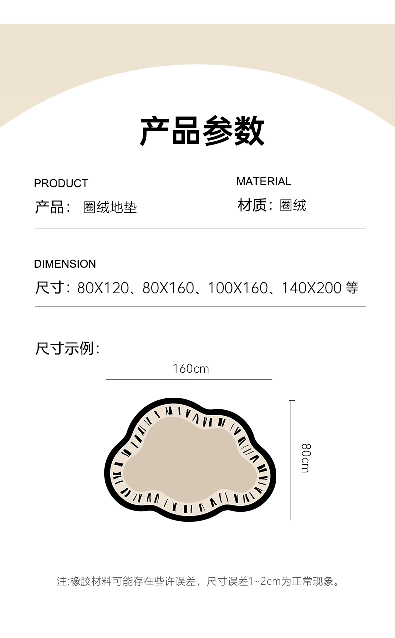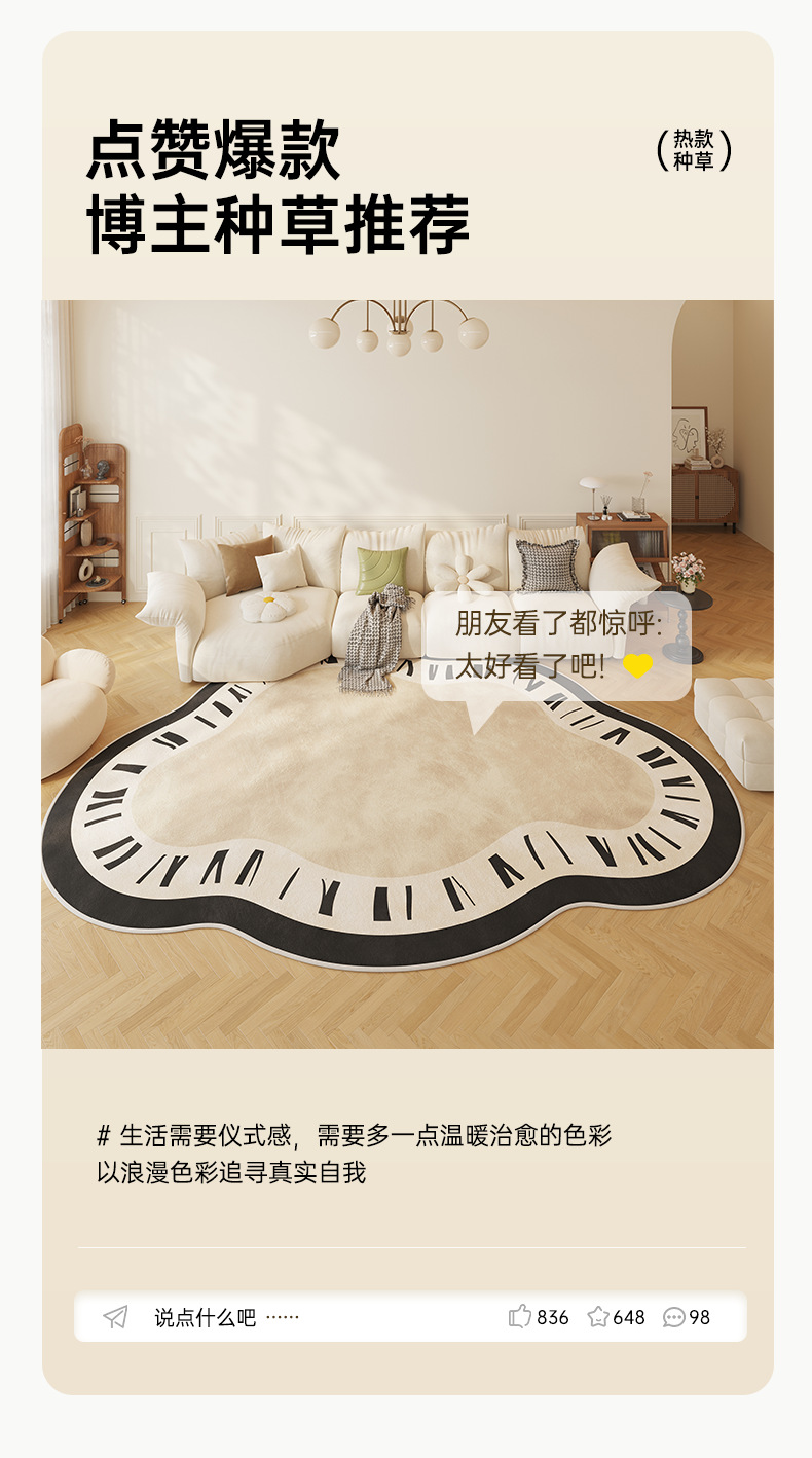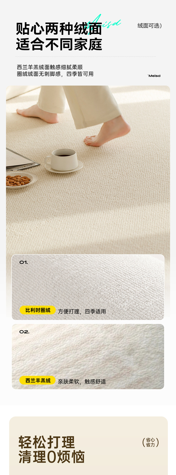 商品名稱:法式奶油风客厅地毯耐脏易打理地垫大面积满铺防滑垫轻奢卧室床边