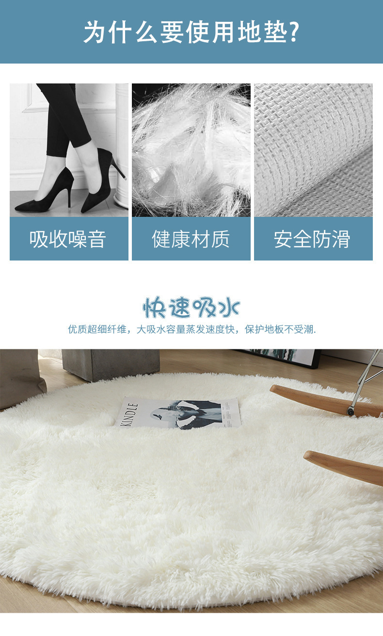 商品名稱:纯色丝毛圆形地毯客厅吊篮椅垫沙发瑜伽垫卧室耐脏易打理毛绒地垫