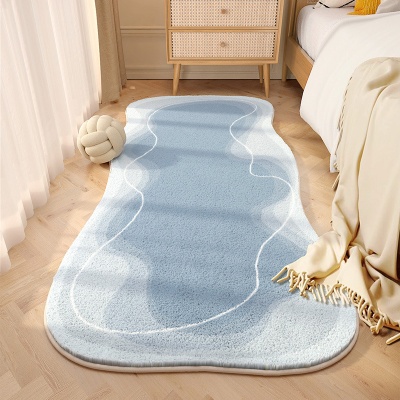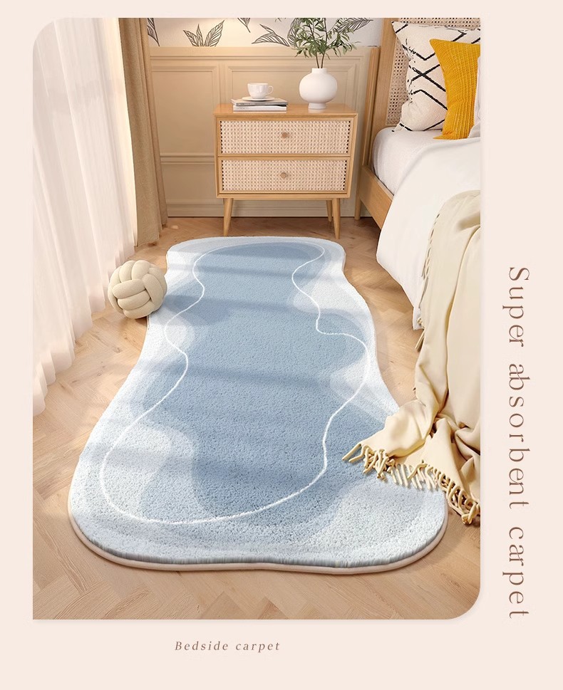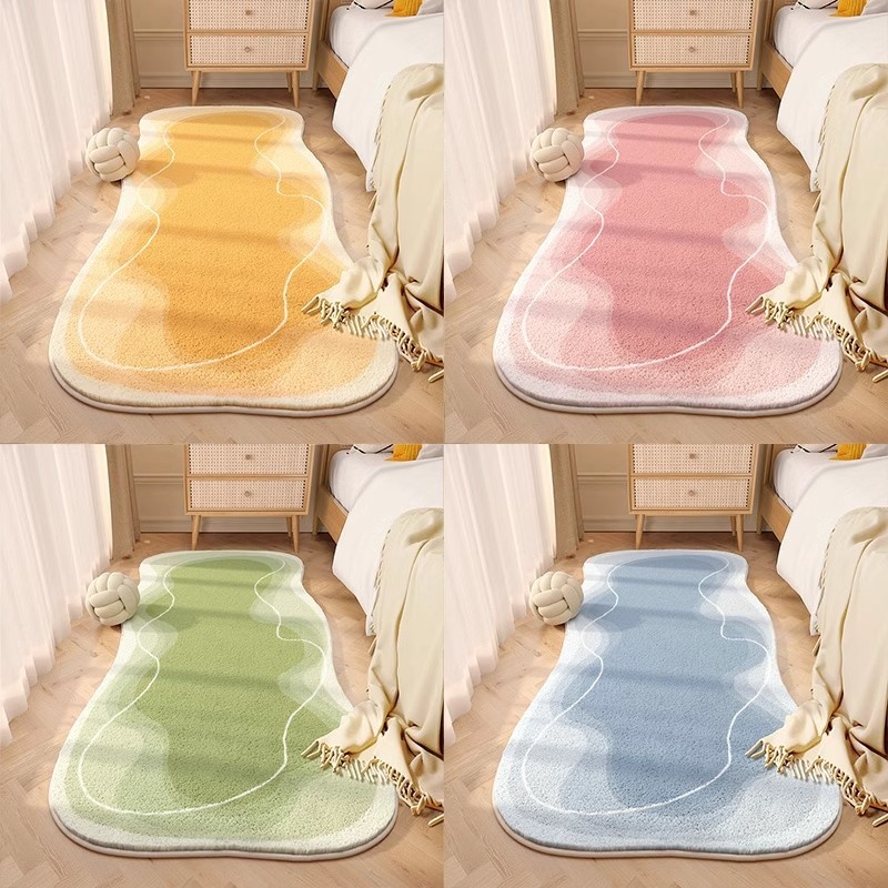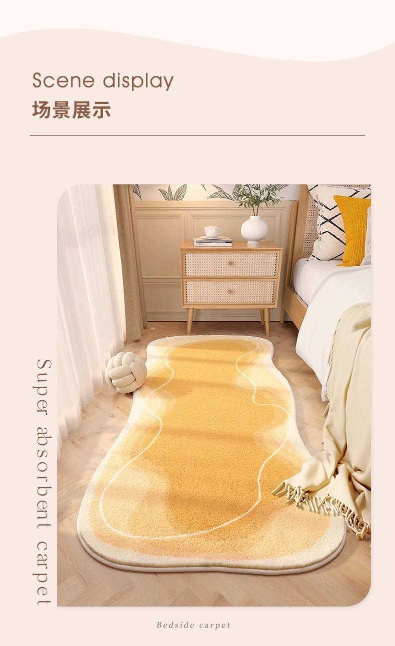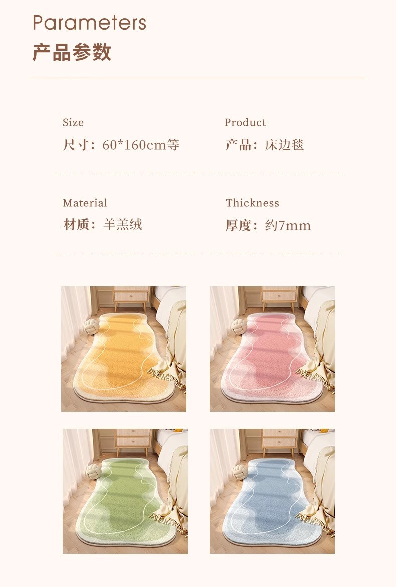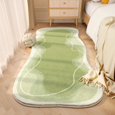 商品名稱:新款卧室绿色床边地毯少女ins奶油风轻奢高级感不规则长条地垫
