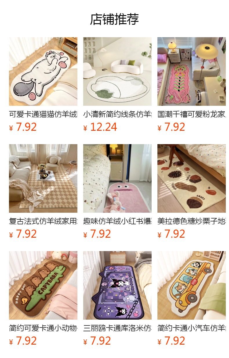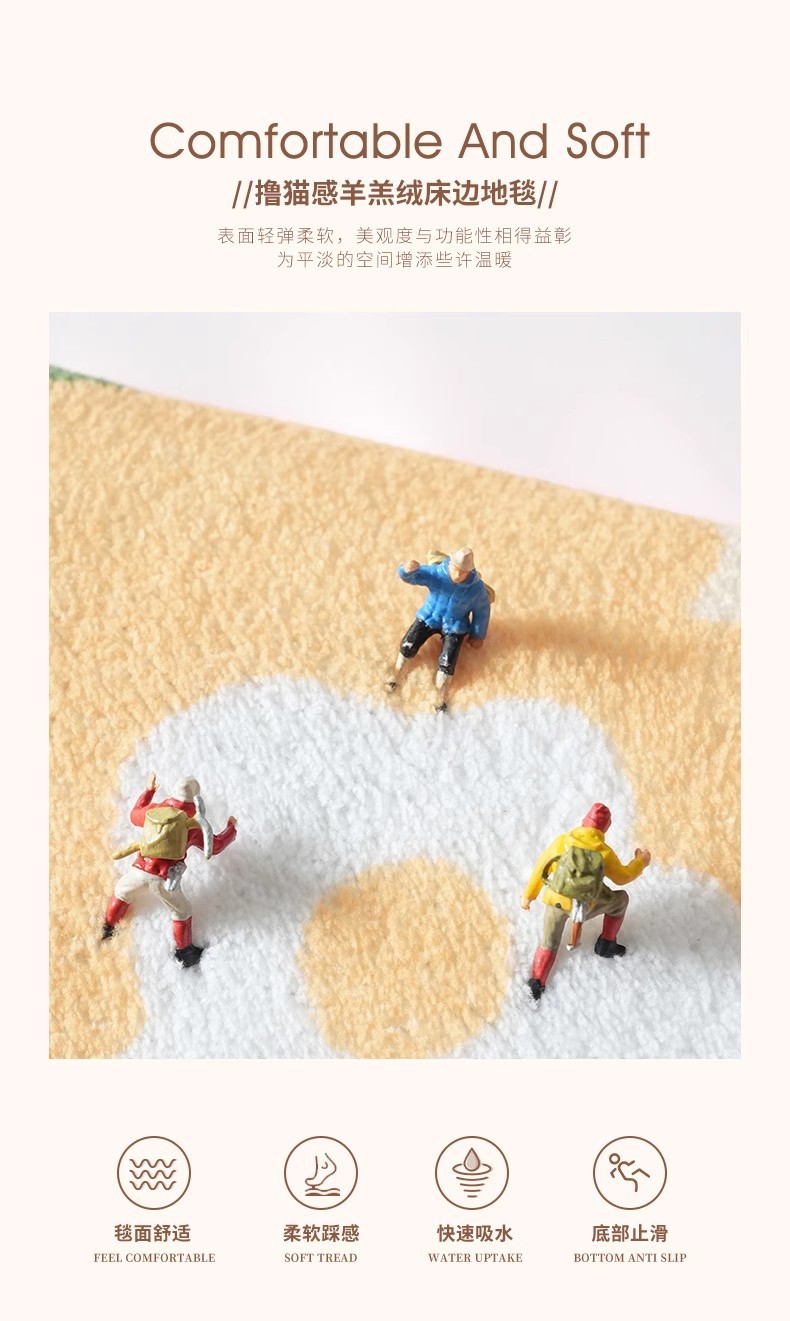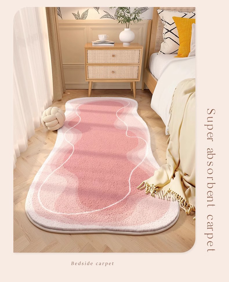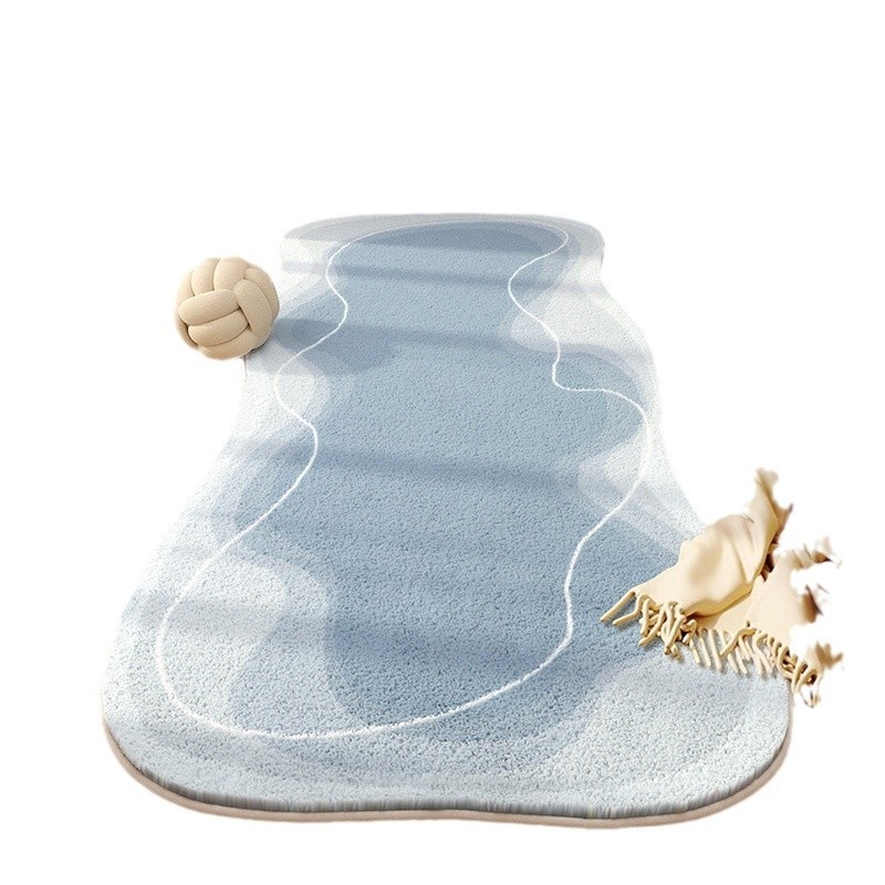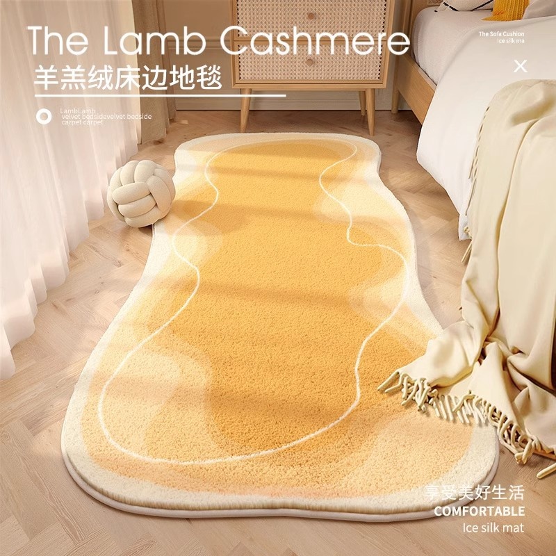 商品名稱:新款卧室绿色床边地毯少女ins奶油风轻奢高级感不规则长条地垫