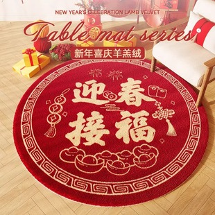 蛇年地毯圆形氛围感红色装饰客厅仿羊绒地垫子喜庆2025新款新年