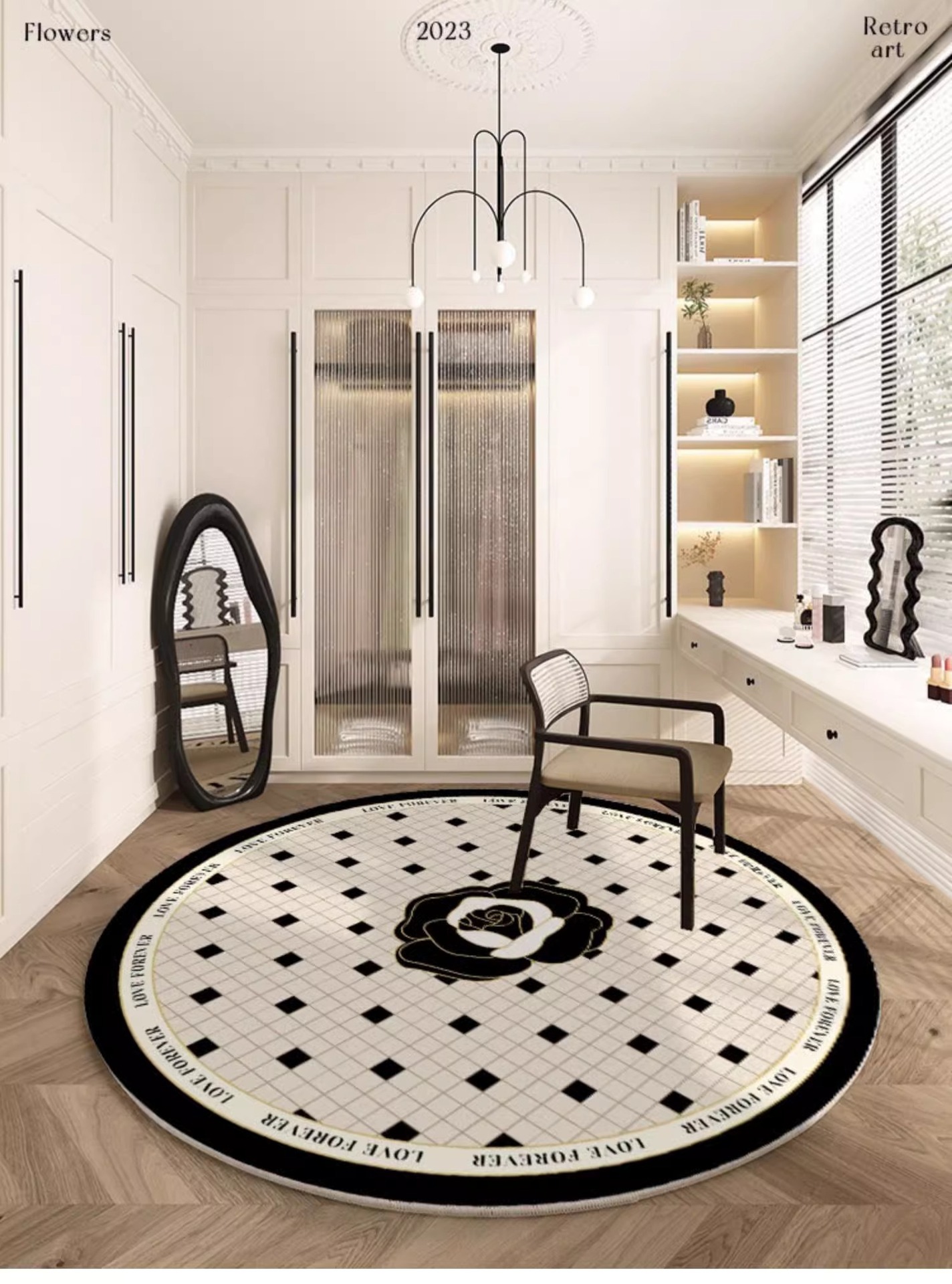 商品名稱:奶油风圆形地毯轻奢高级感客厅茶几卧室床边衣帽间梳妆台椅子地垫
