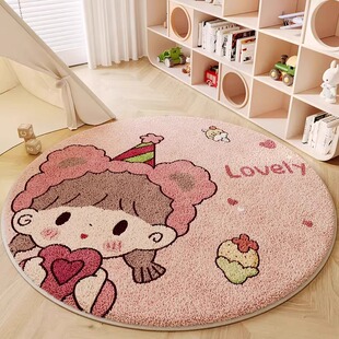 圆形地毯少女心卧室沙发茶几毯保暖儿童床边毯仿羊绒书房转椅地垫