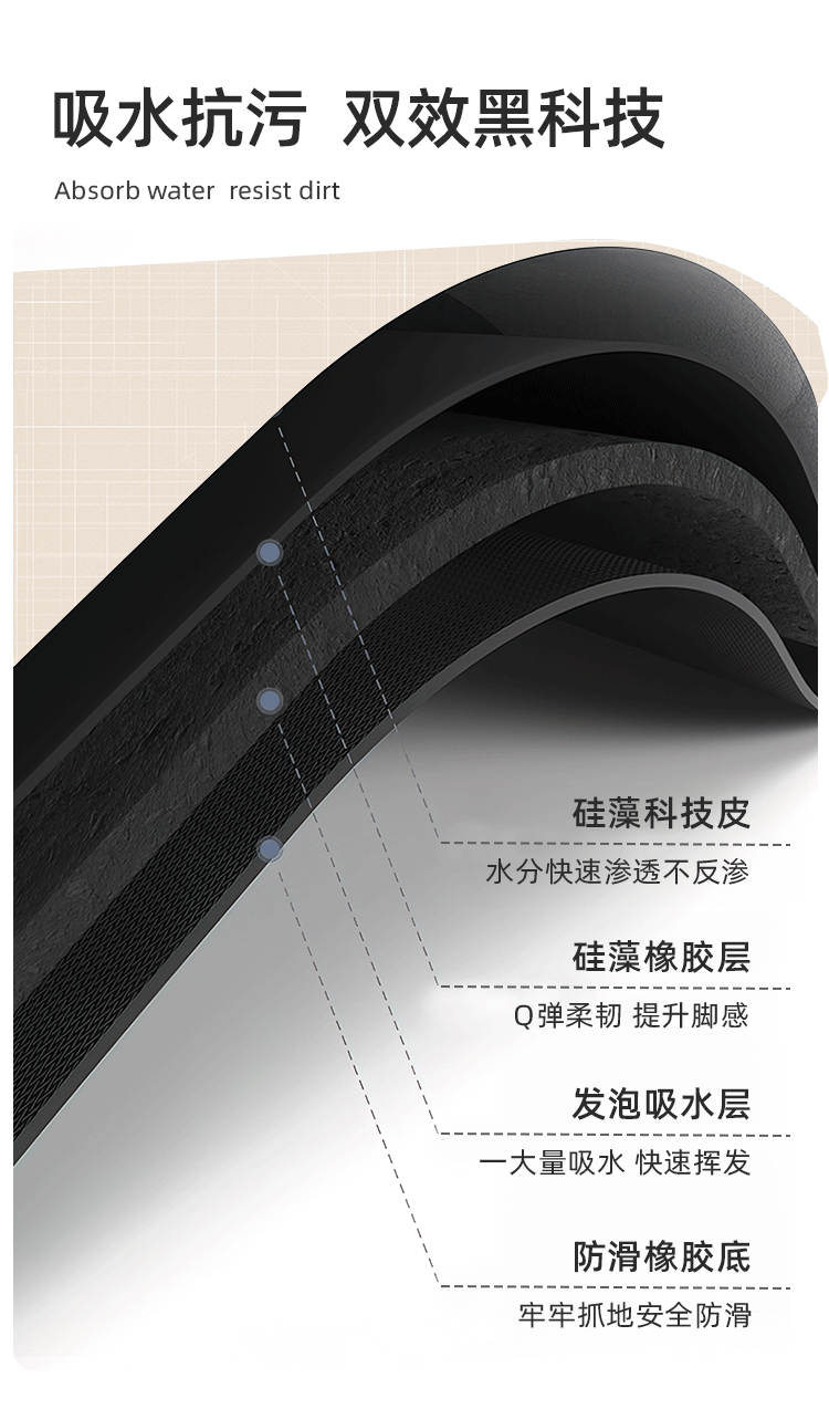 硅藻泥浴室防滑地垫卫生间吸水防滑垫速干款厕所门口脚垫门垫地毯