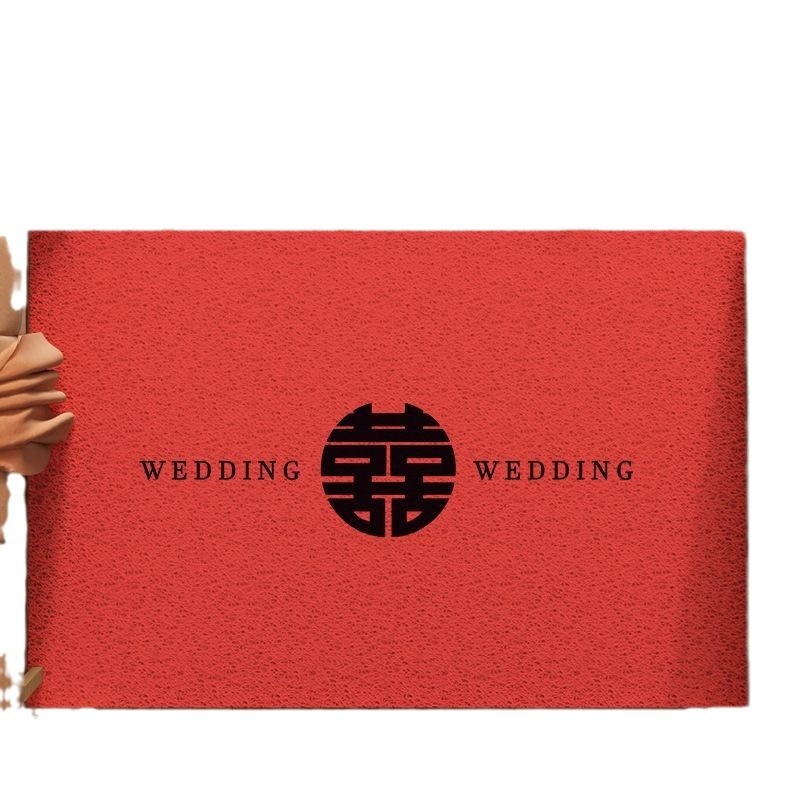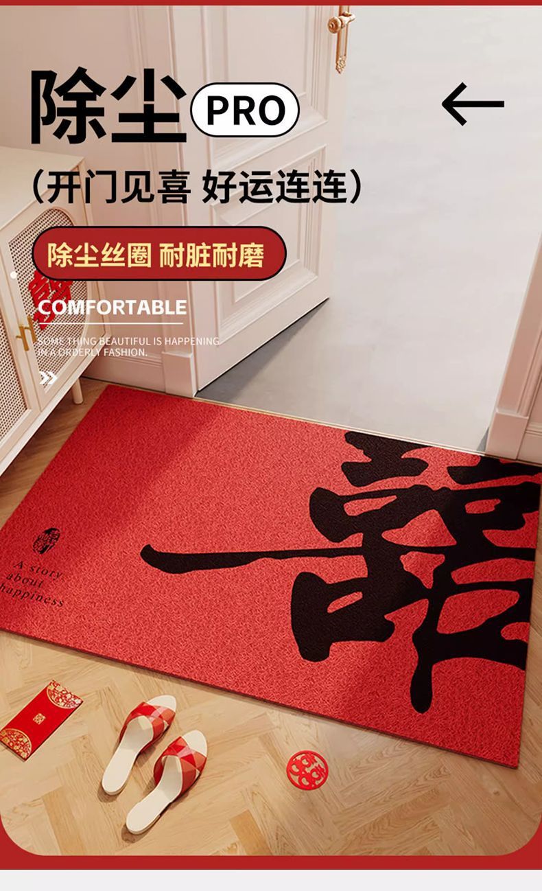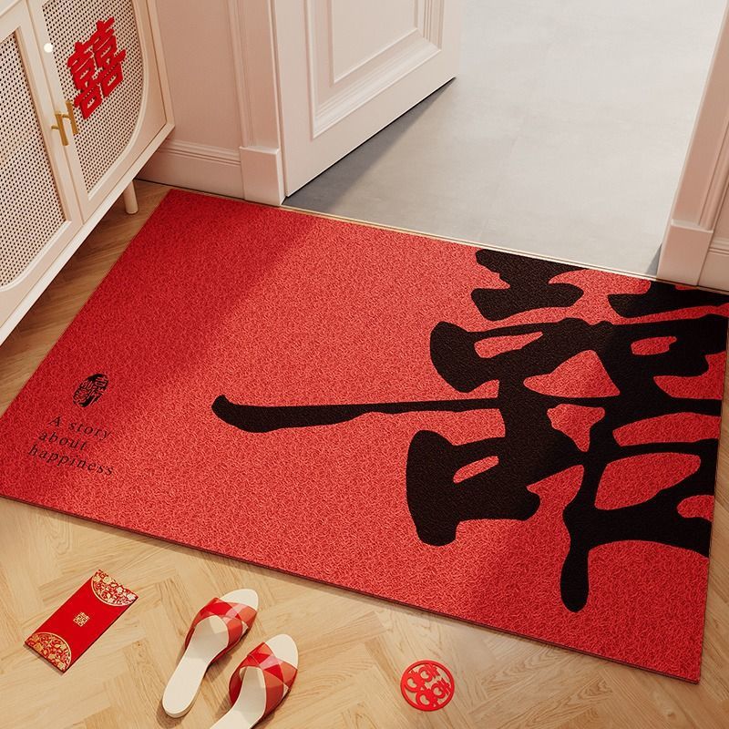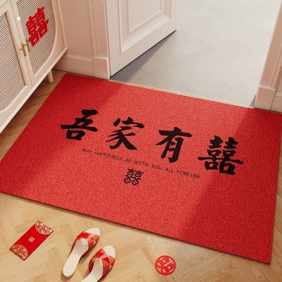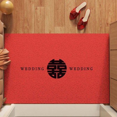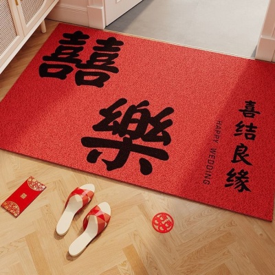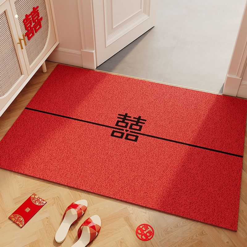 入户门口红色囍字丝圈地垫结婚脚垫耐脏耐磨喜庆地毯可清洗可裁剪