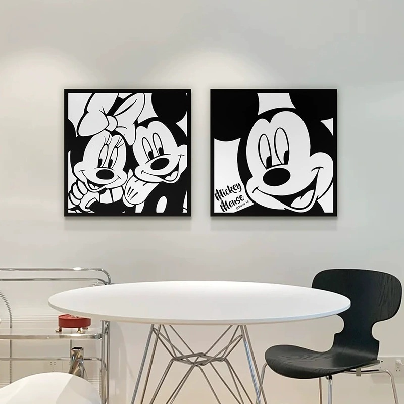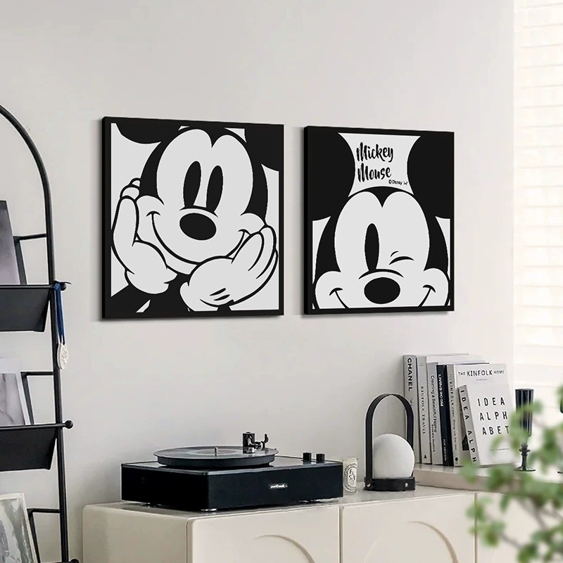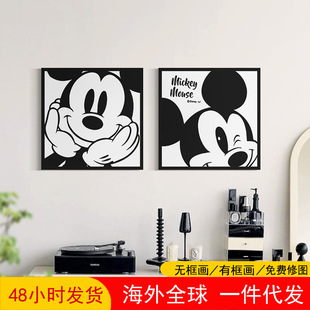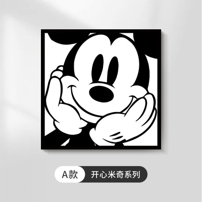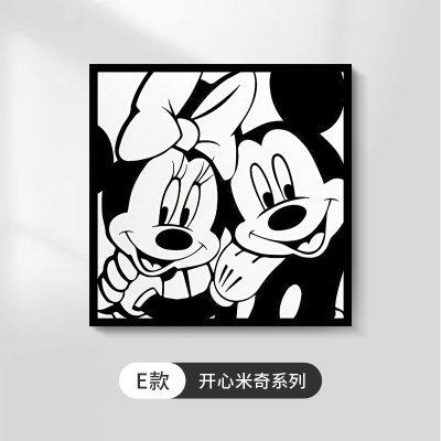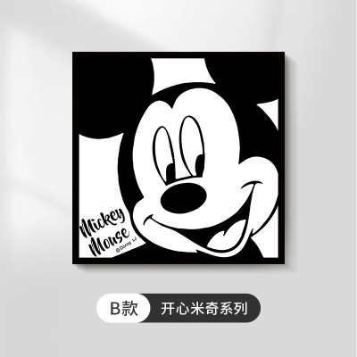 黑白米奇装饰画无框画油画布相框油画高级感客厅挂画k画廊清库存