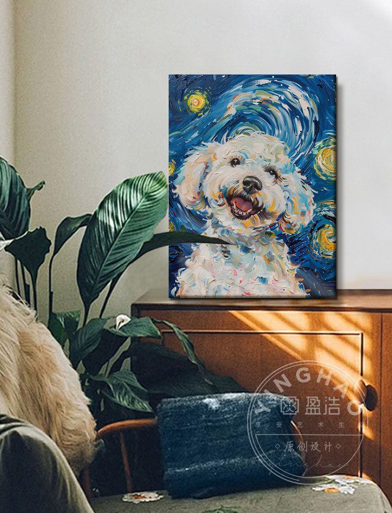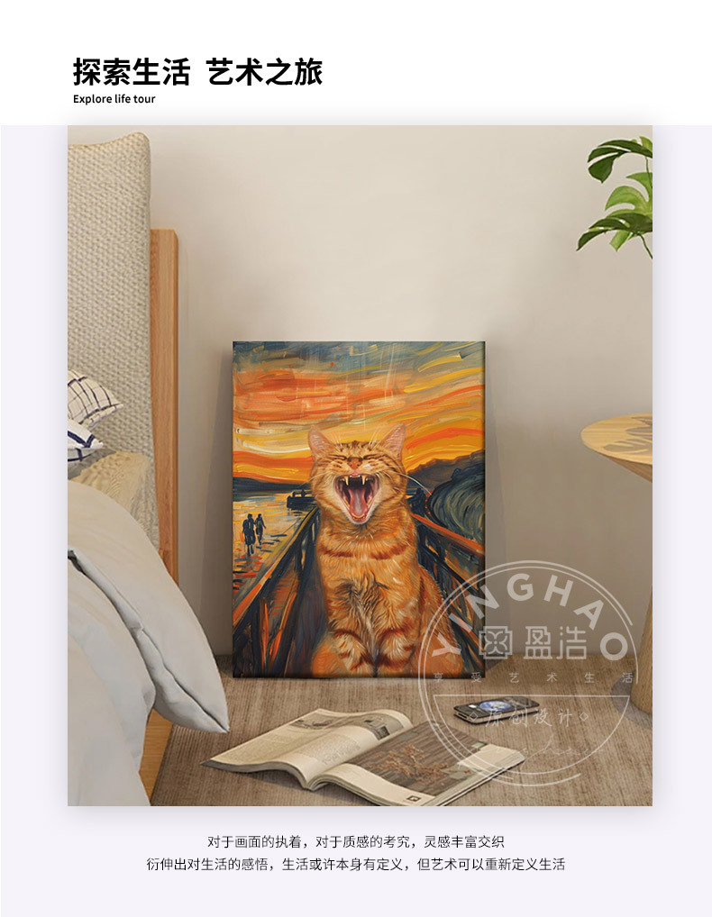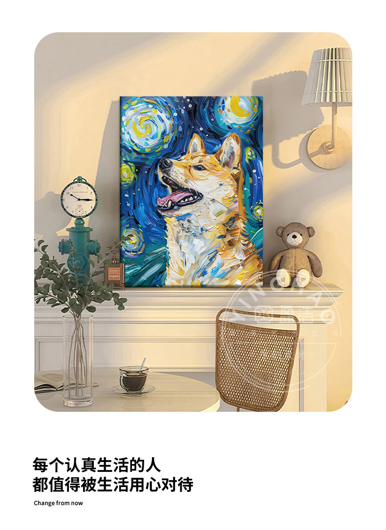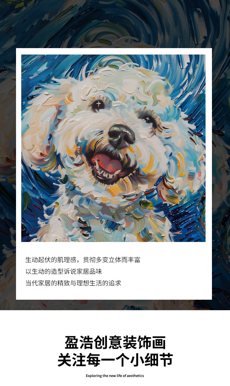 商品名稱:盈浩无框小红书卡通小狗猫油画效果喷绘卡通宠物卧室装饰画批发
