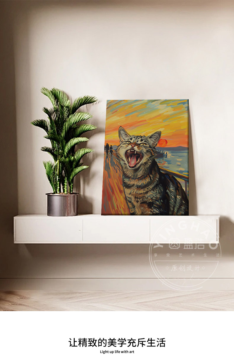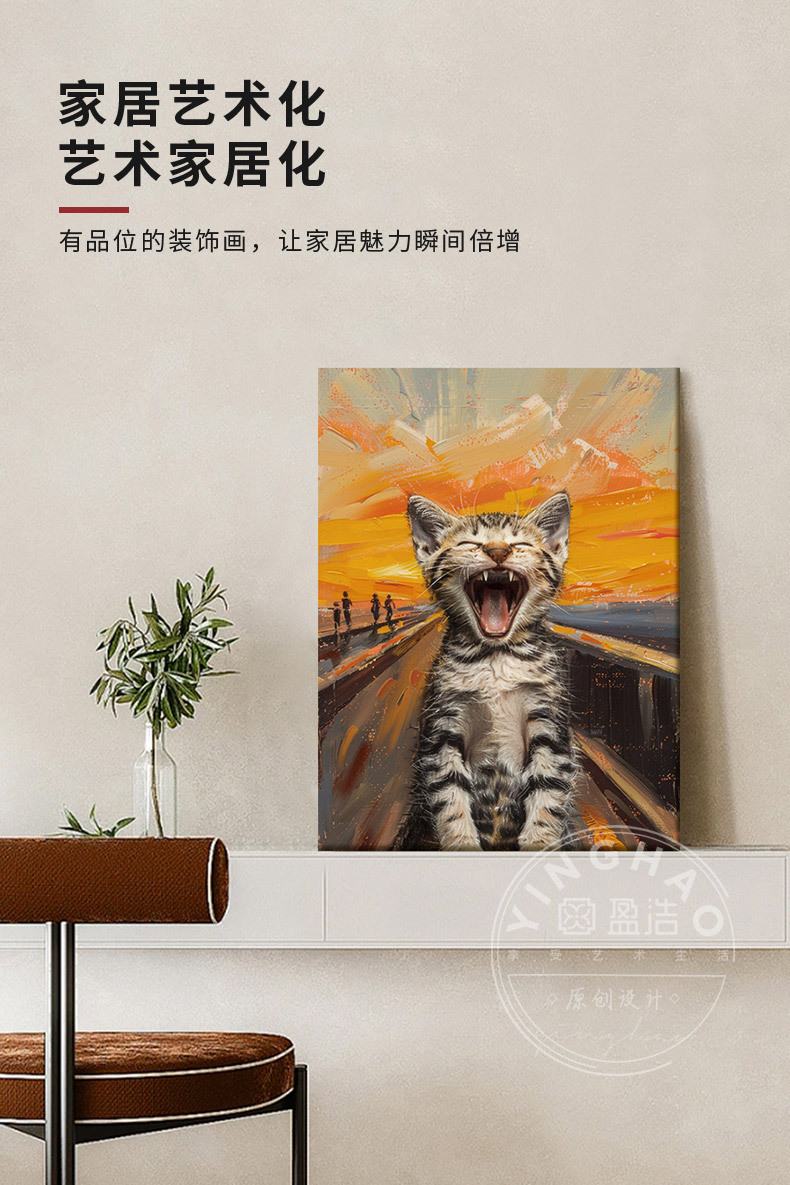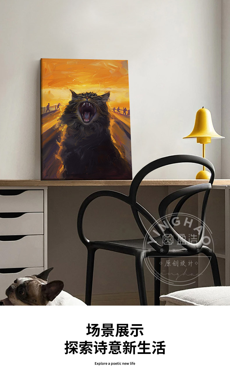商品名稱:盈浩无框小红书卡通小狗猫油画效果喷绘卡通宠物卧室装饰画批发