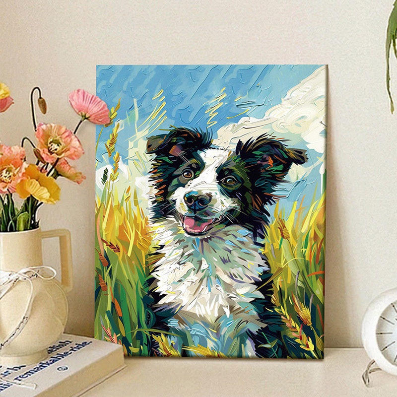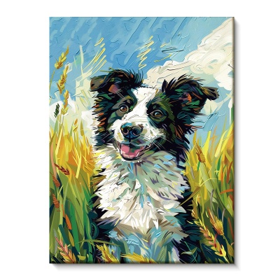 盈浩无框小红书卡通小狗猫油画效果喷绘卡通宠物卧室装饰画批发