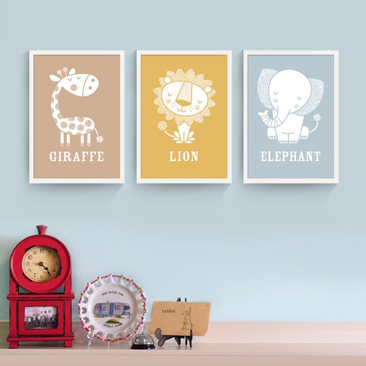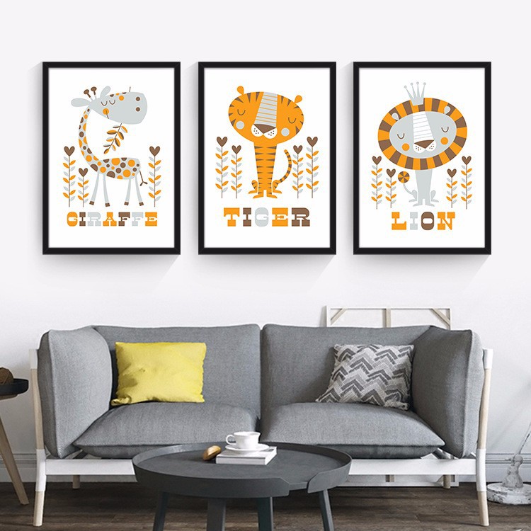 - 商品名稱:外贸新款北欧现代儿童插画可爱卡通动物狮子儿童书房卧室装饰画
