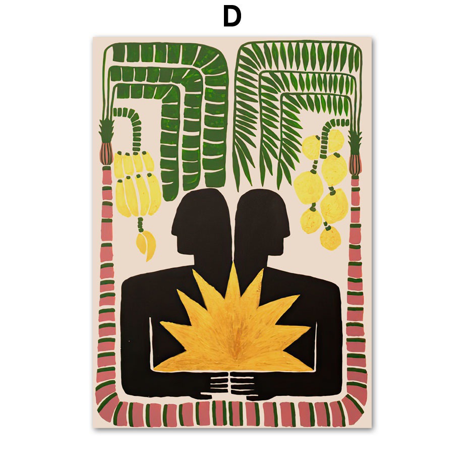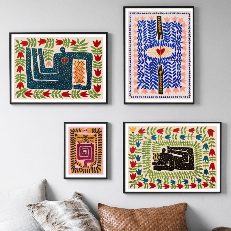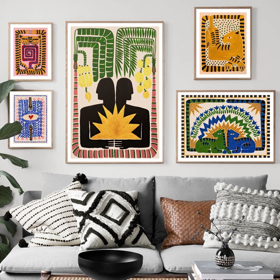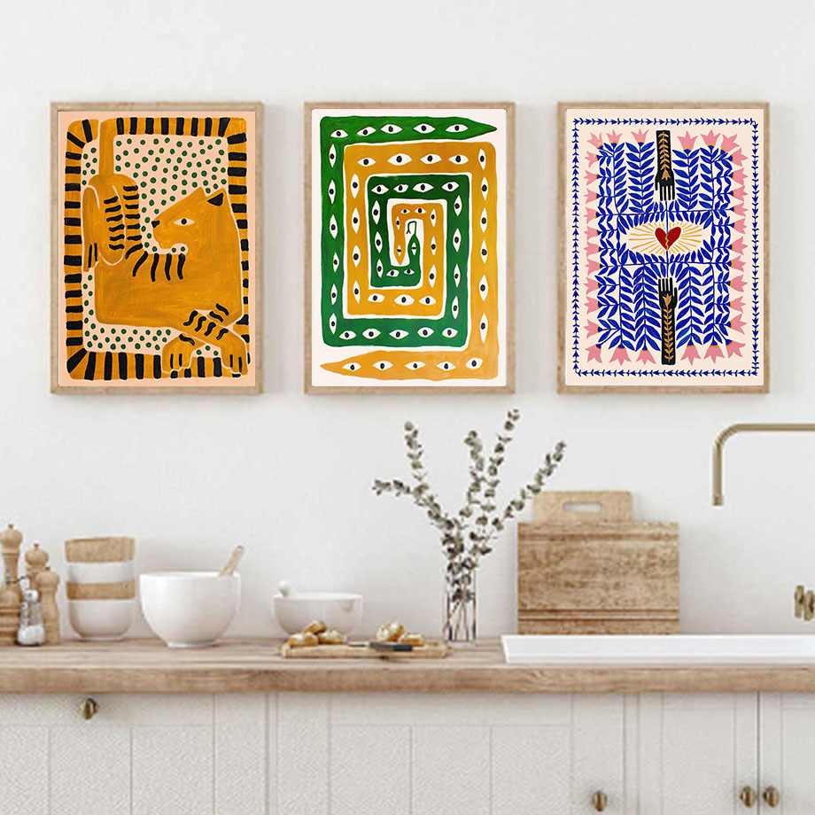 北欧抽象艺术餐厅客厅装饰画复古线条老虎墙壁画小众客厅卧室挂画
