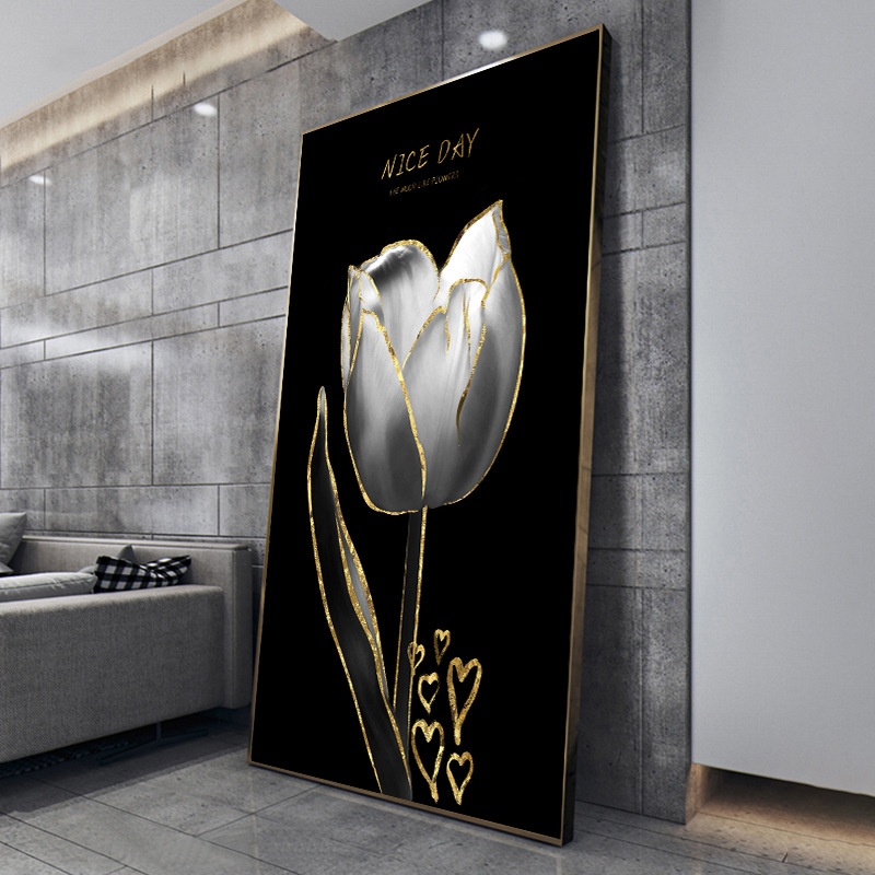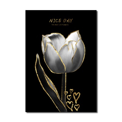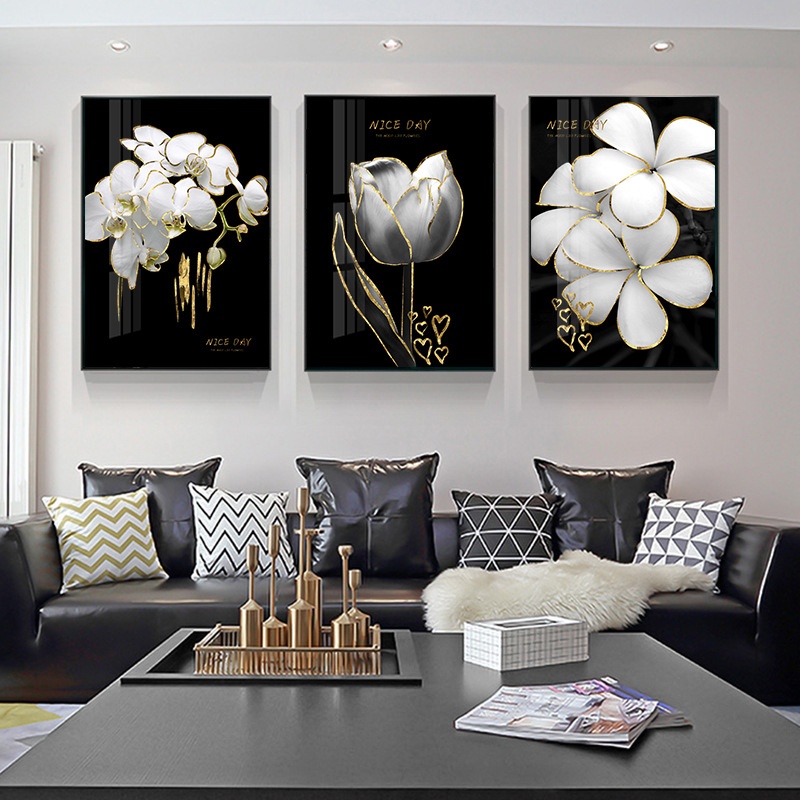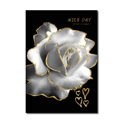 黑白花海报金色帆布画现代家居装饰墙艺术绘画北欧客厅装饰画芯