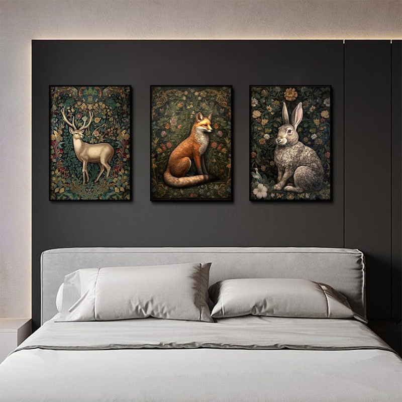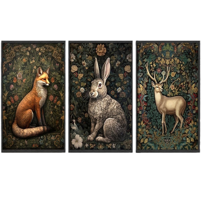 动物海报 狐狸兔子梅花鹿三件套装饰画 亚马逊爆款适合客厅装饰画