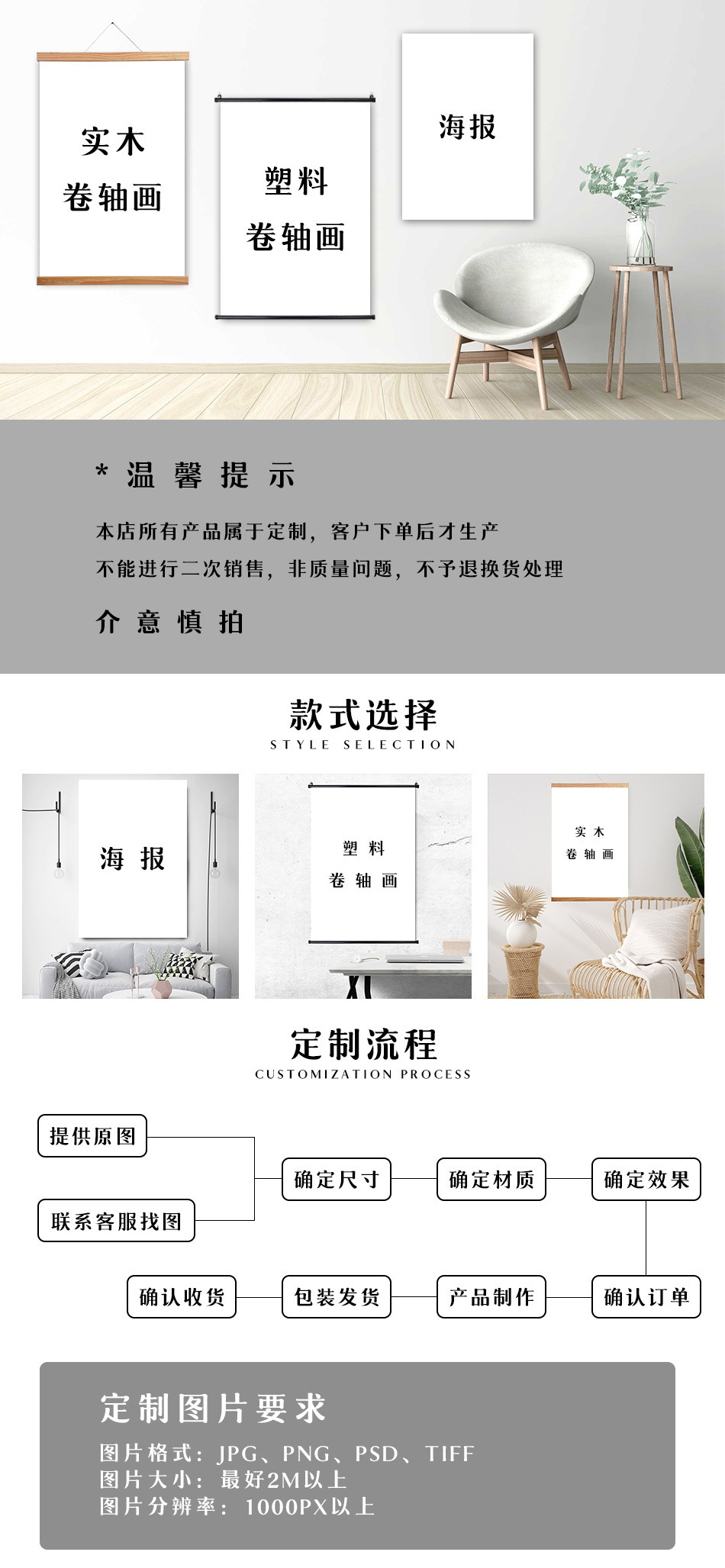 1.店内销售的产品采用无框帆布印制
