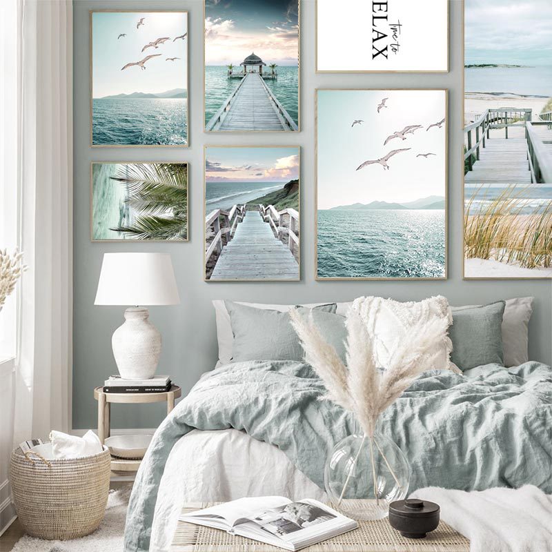 ⇗跨境海滩海洋装饰画风景海报墙艺术挂画椰树速卖通壁画民宿酒店