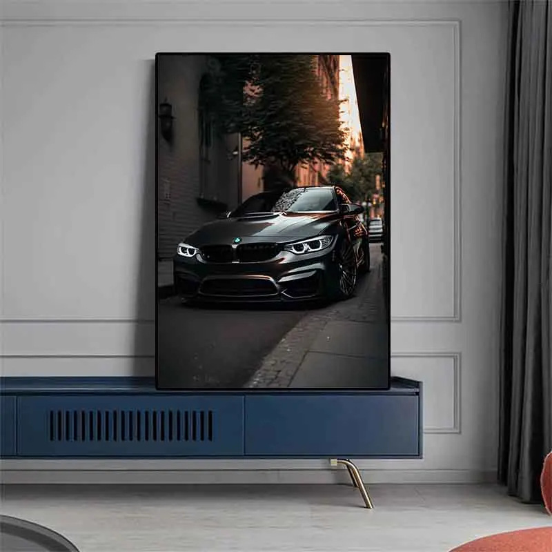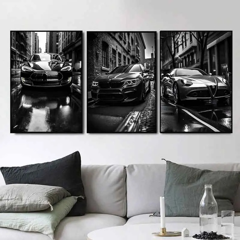商品名稱:跑车汽车主题帆布海报无框画现代潮流沙发背景挂画客厅卧室装饰画