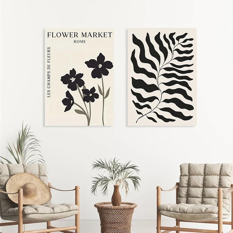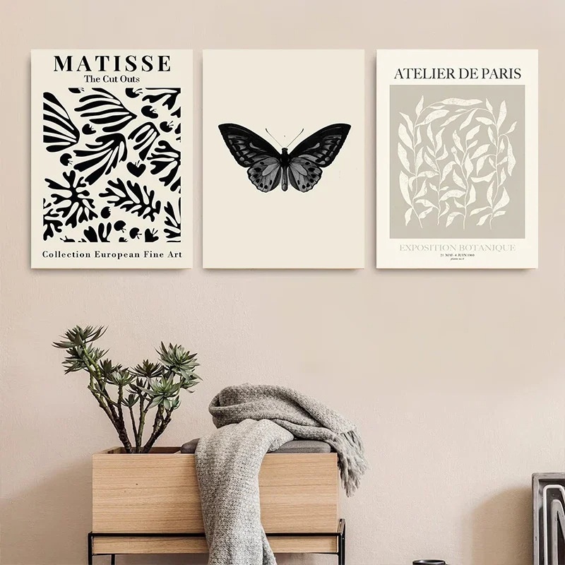 复古黑色蝴蝶花卉抽象马蒂斯客厅卧室帆布画海报墙艺术画芯无框画