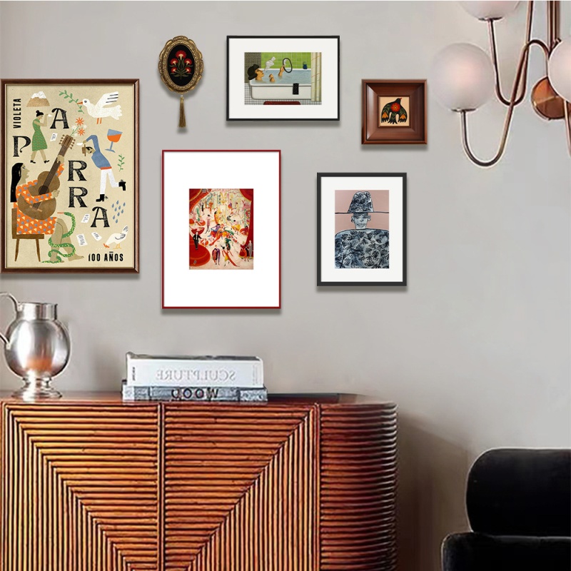 法式混搭中古风客厅装饰画现代花卉海报画高级感餐厅画墙挂画组合