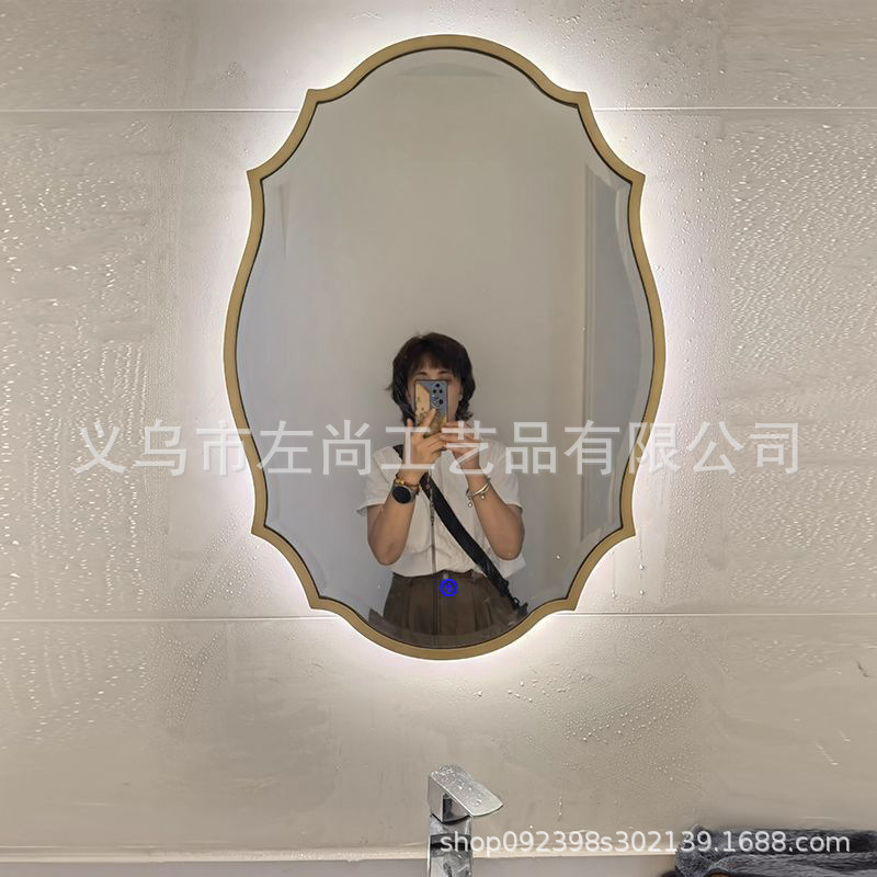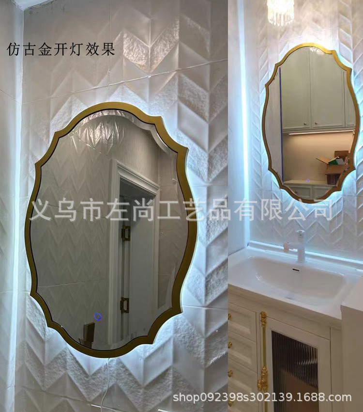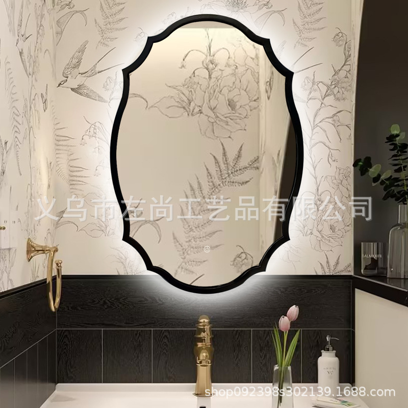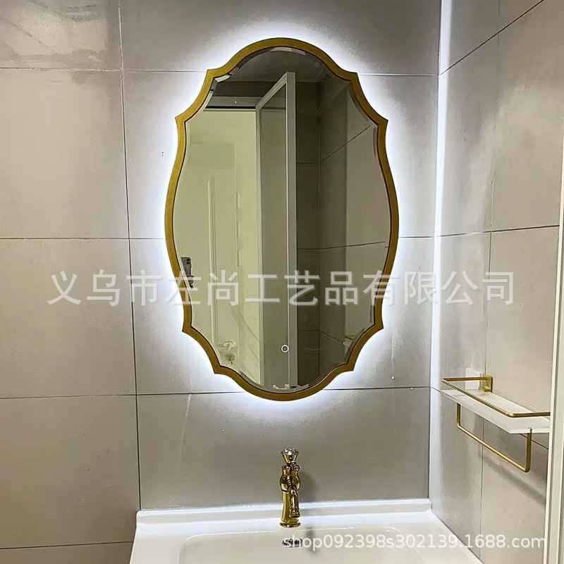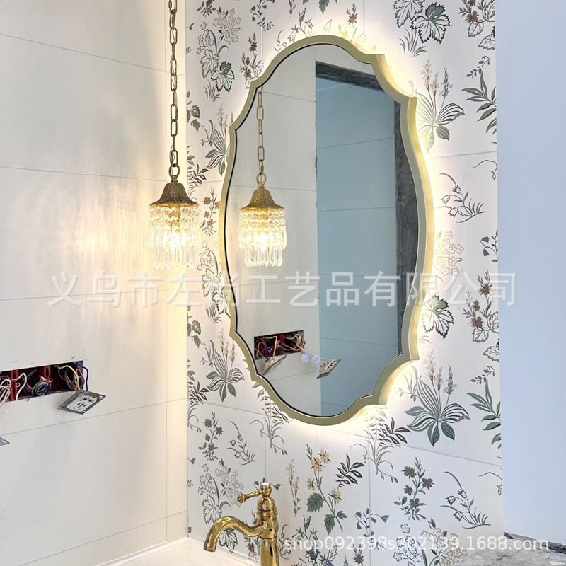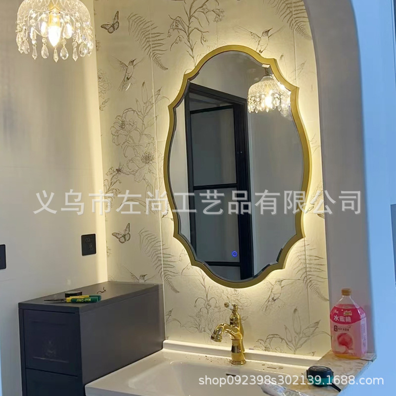 法式复古美式椭圆浴室镜子卫生间挂镜洗手台灯镜led欧式智能镜