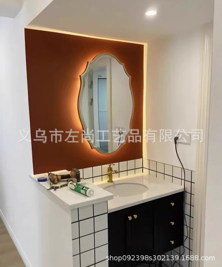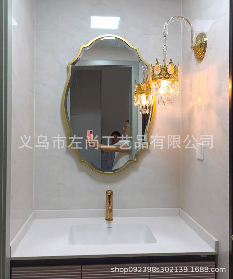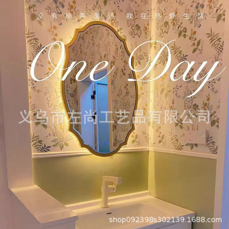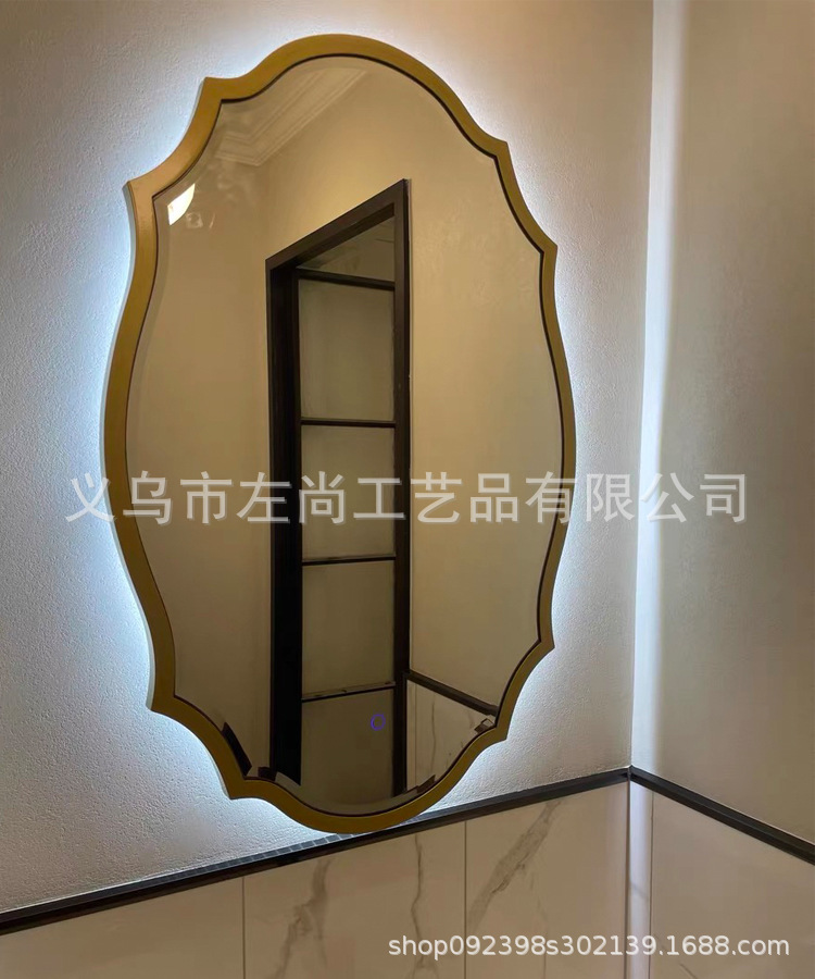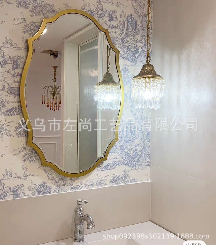 法式复古美式椭圆浴室镜子卫生间挂镜洗手台灯镜led欧式智能镜