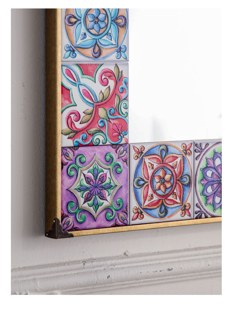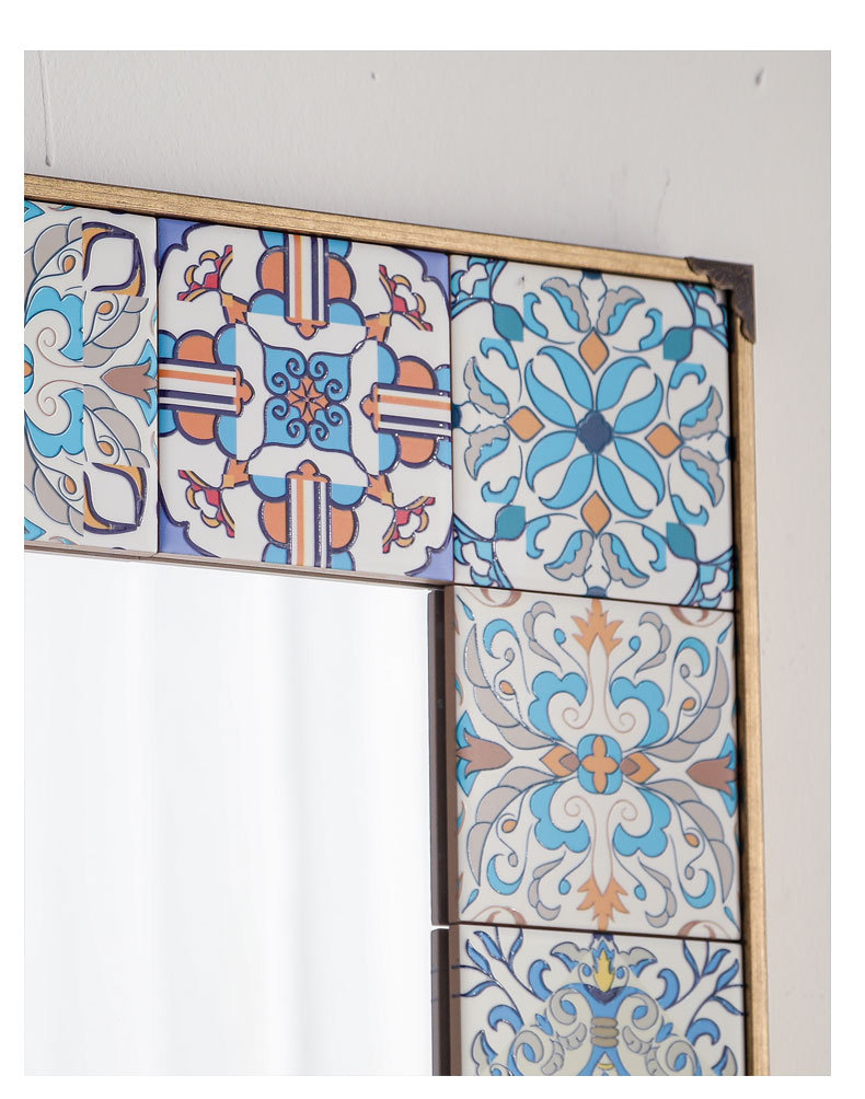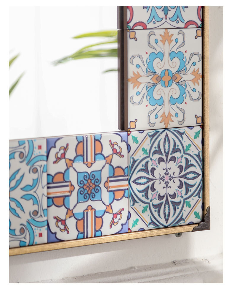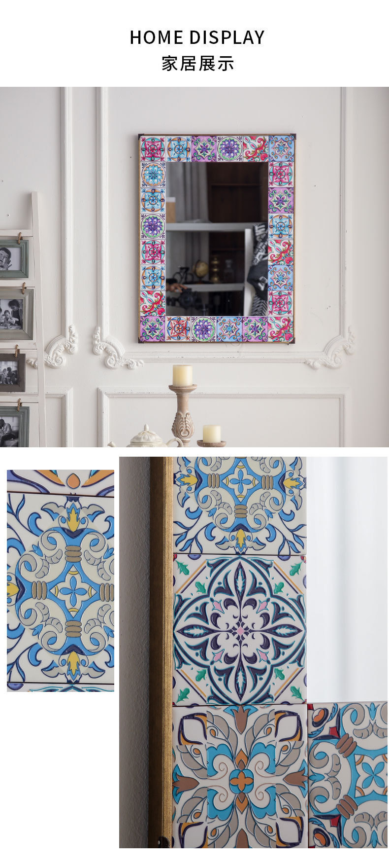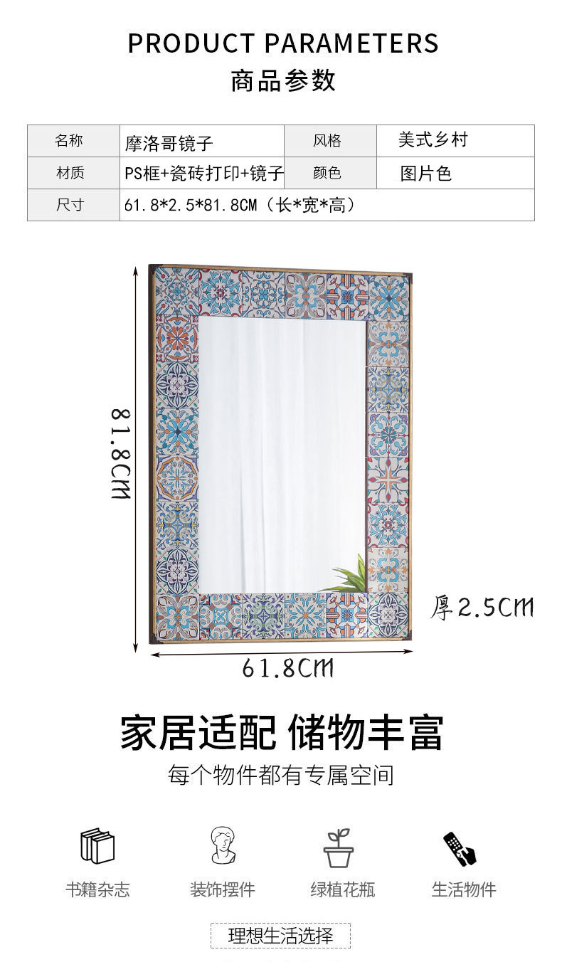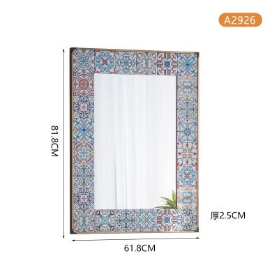 商品名稱:摩洛哥浮雕彩绘镜子民宿创意浴室镜法式复古壁挂穿衣镜宫廷风方镜