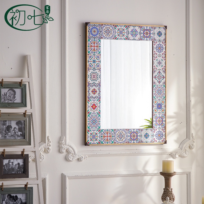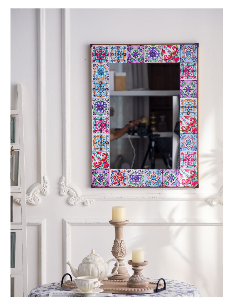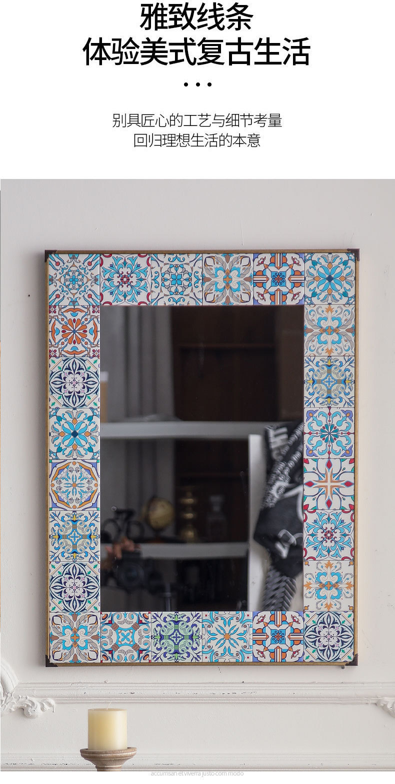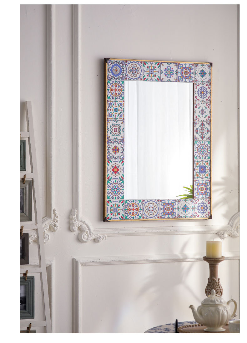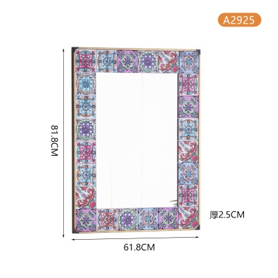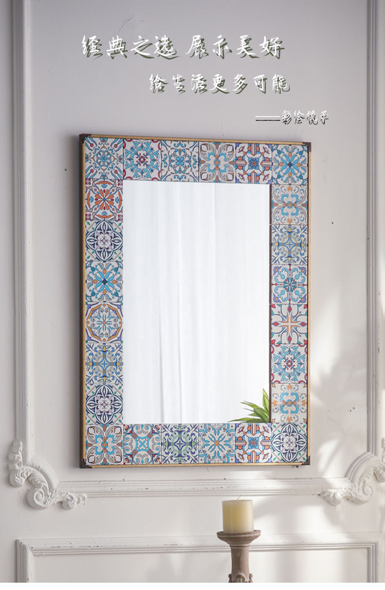 摩洛哥浮雕彩绘镜子民宿创意浴室镜法式复古壁挂穿衣镜宫廷风方镜
