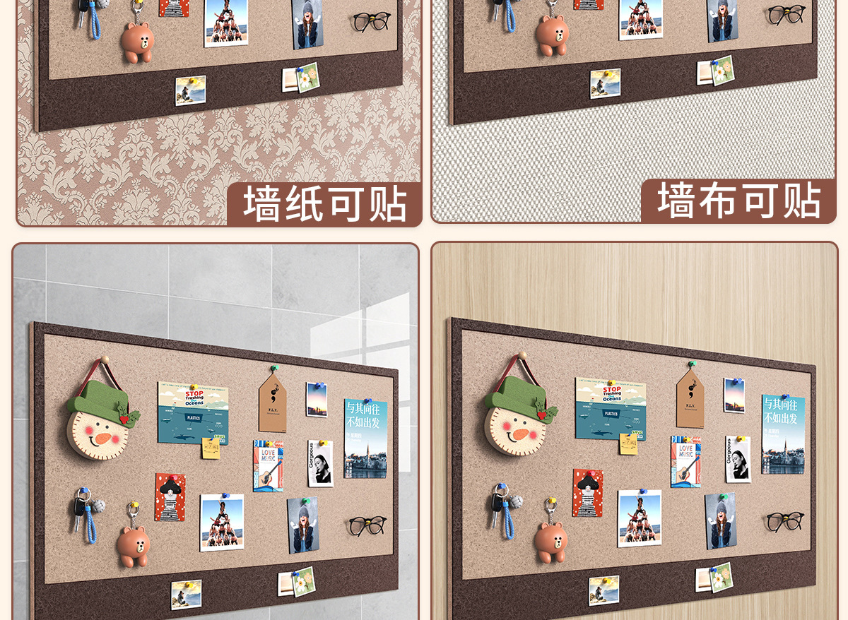 毛毡板照片墙展示板毛绒板拍立得图钉文化墙装饰免打孔上墙留言板