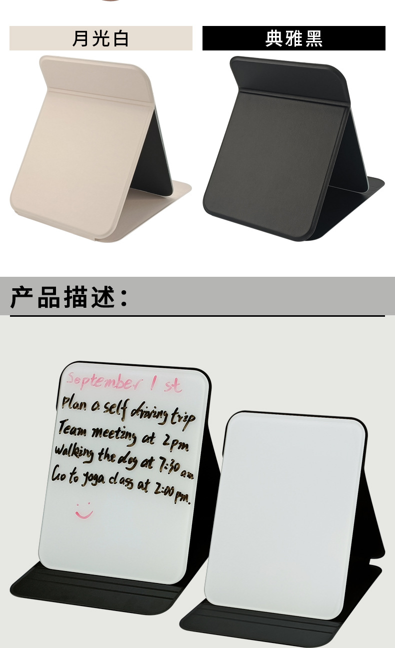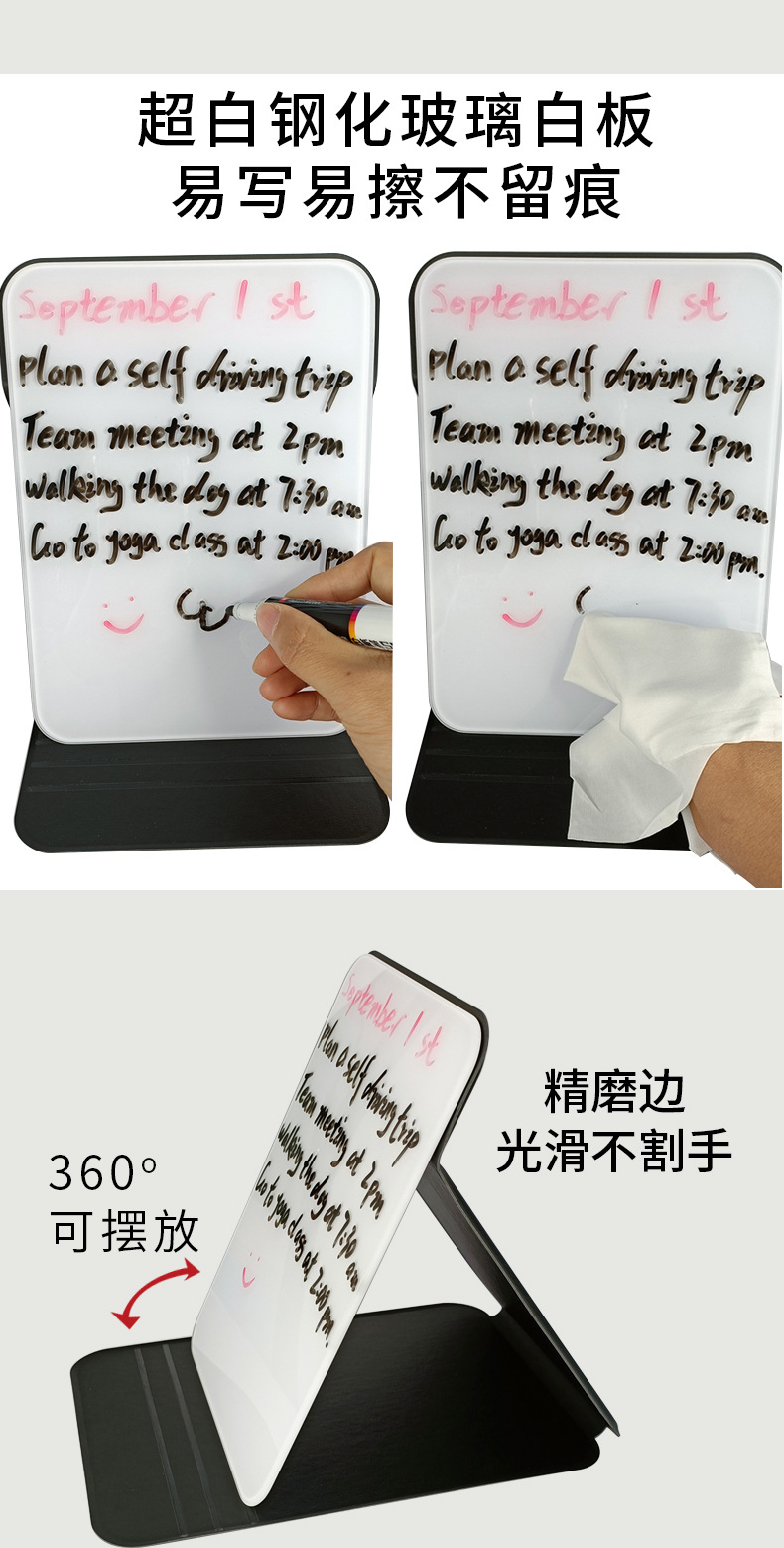 PU外壳钢化玻璃桌面小白板折叠便携台式办公留言板可擦记事板LOGO