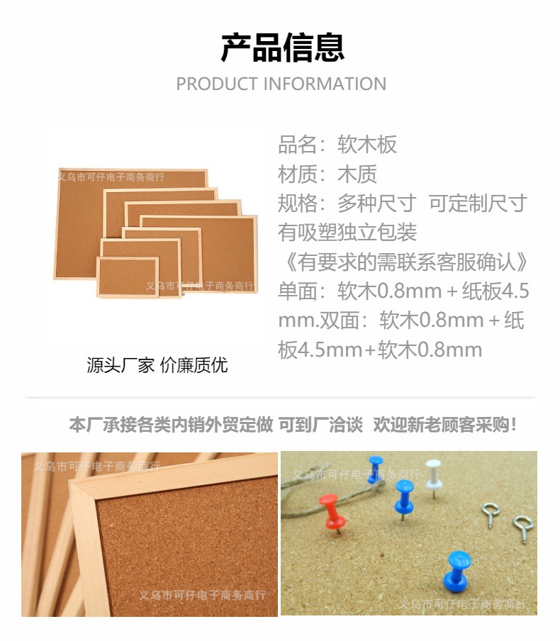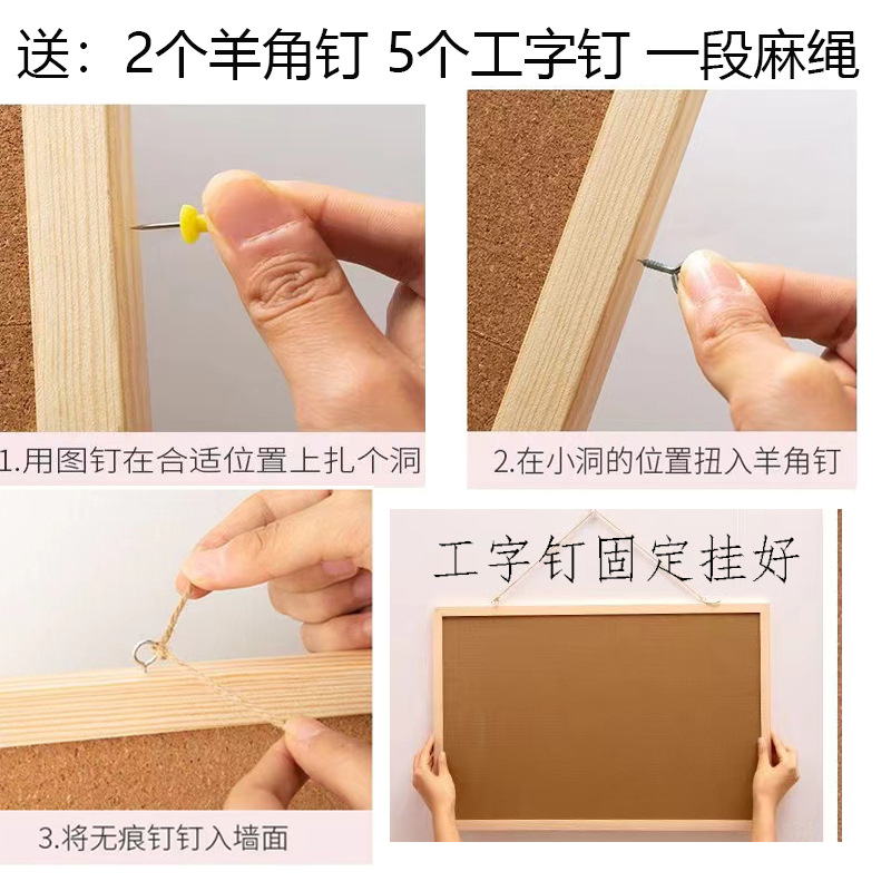 可挂式单双面木框软木板ins公告板家用记事板幼儿园照片墙愿景板