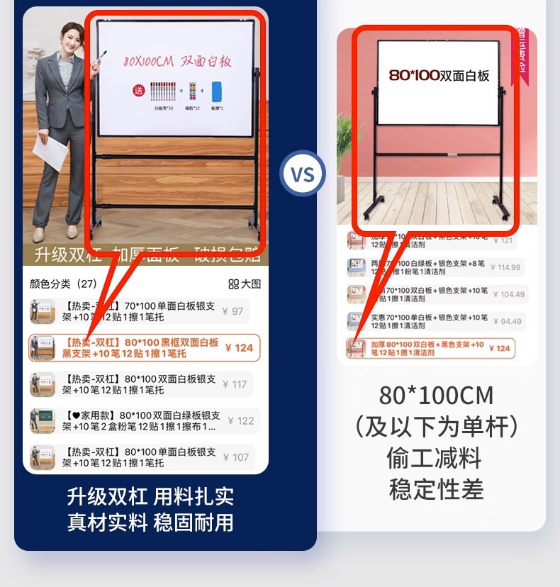 80*100黑框双面白板黑支架+配件大礼包